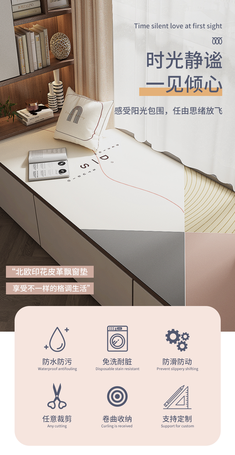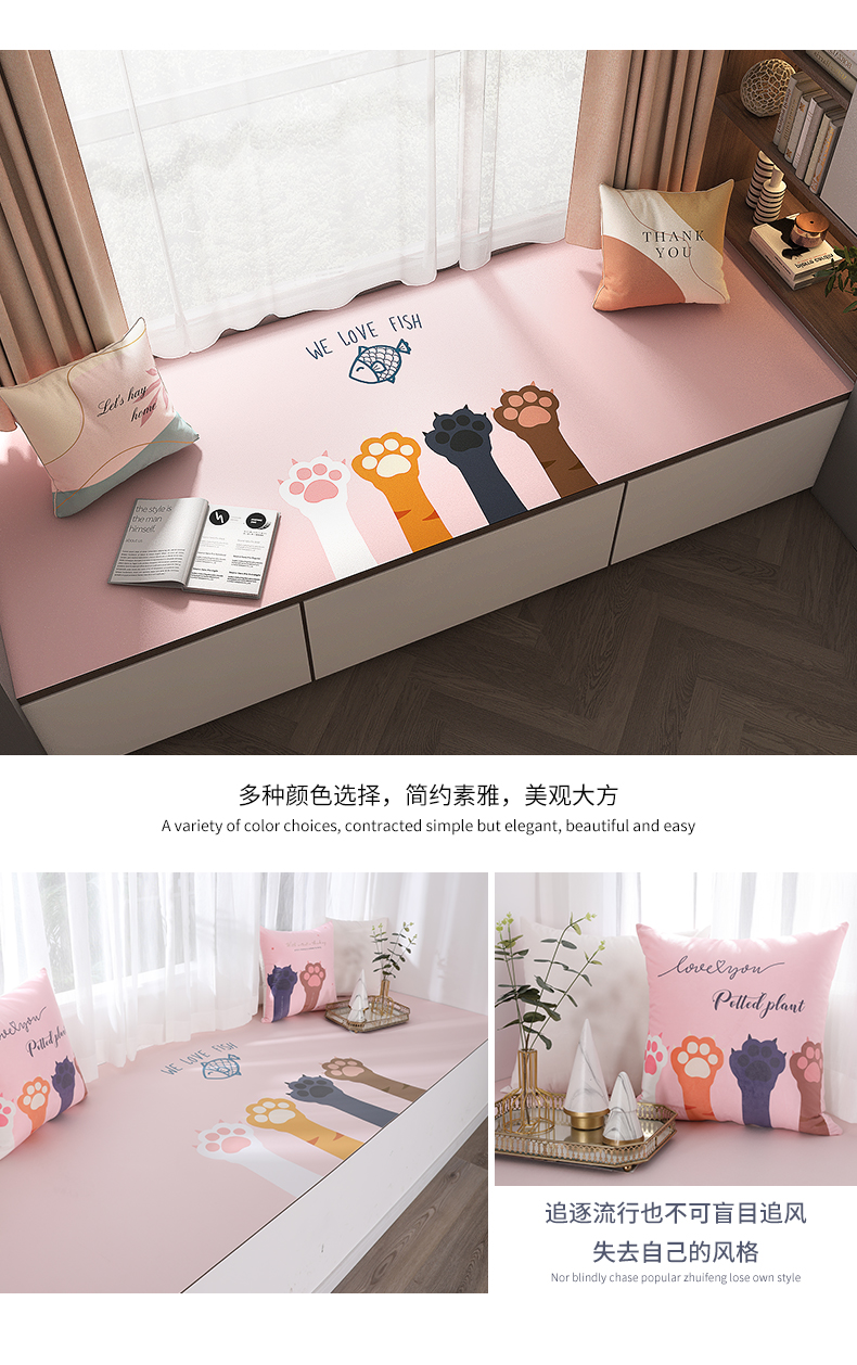 北欧風のレザーの窓枠クッション2021年新型四季通用裁断が自由にできます。軽奢な防水滑り止めクッションの愛猫です。pu-6 mmは自由に裁断できます。60*100 cmです。