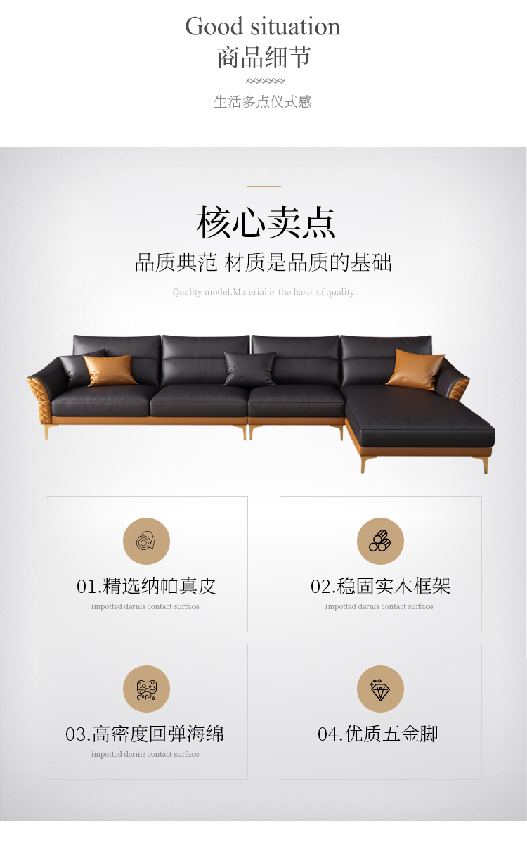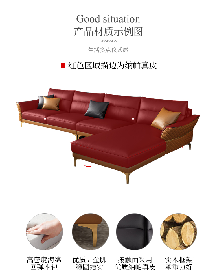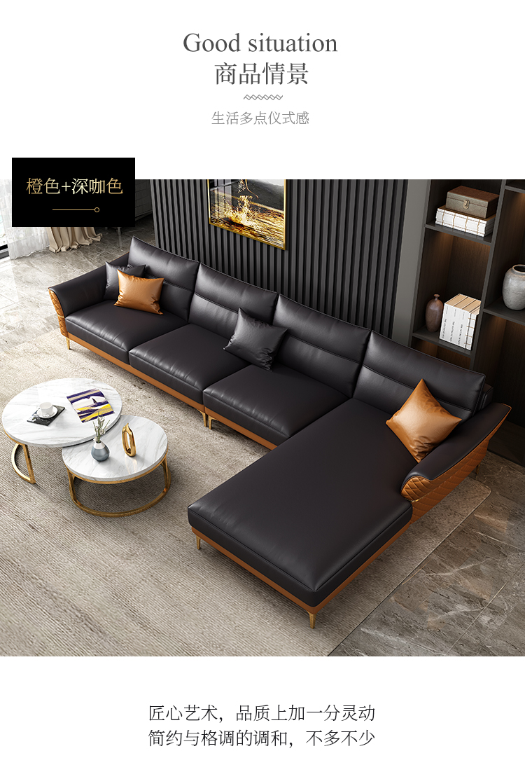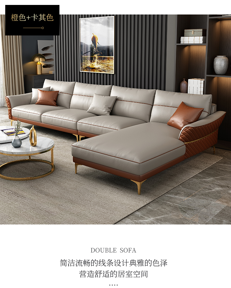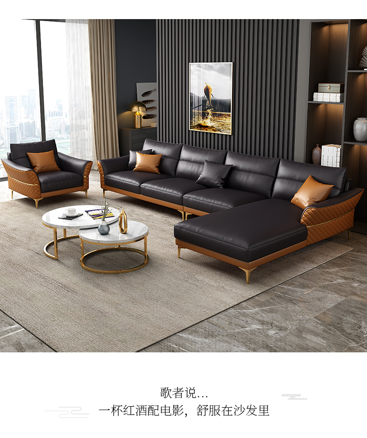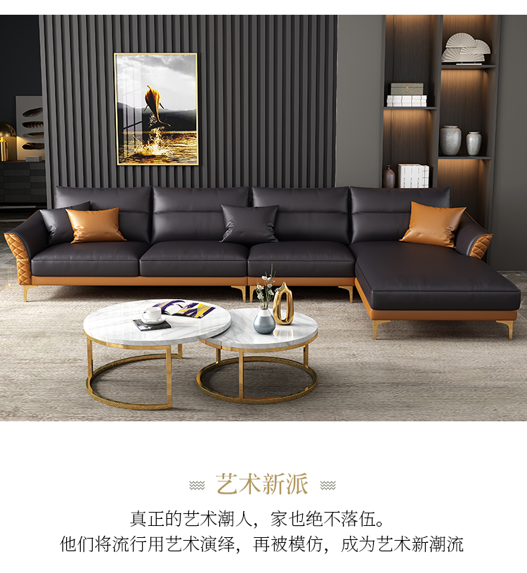 | 商品名称 | 軽奢後現代革張りのソファ客間の牛革北欧シンプルなソファースタイルの家具四人位+踏ん張りセット |