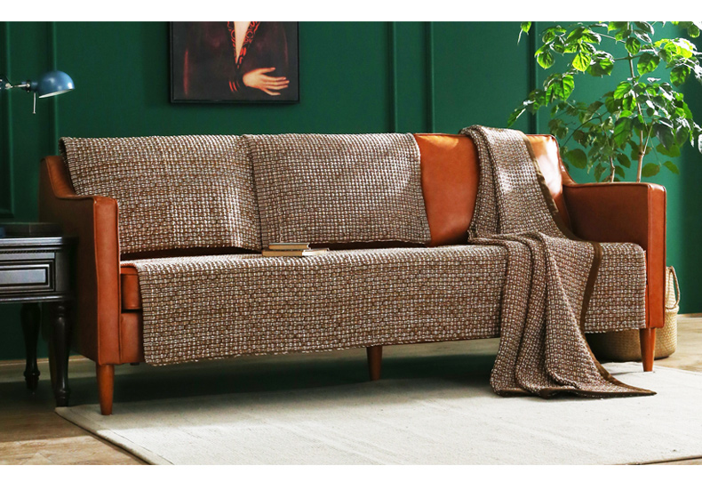 ヨーロッパ式革张りのソフティーカバーアメリカ式クッション四季通用の軽过分コーストリングネリング滑り止め编み厚いコーヒー色70*70 cmシングル位