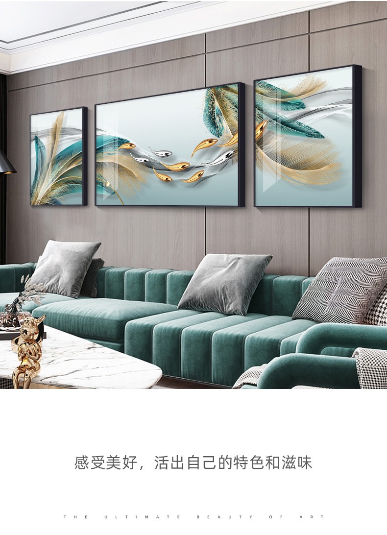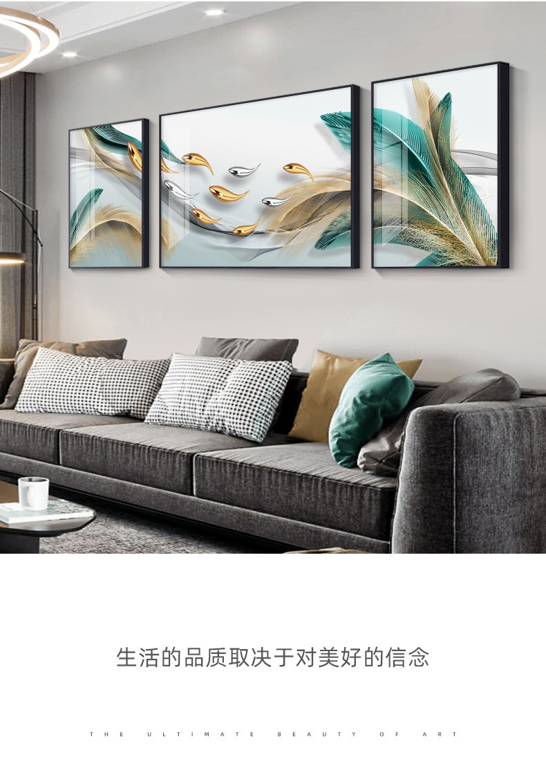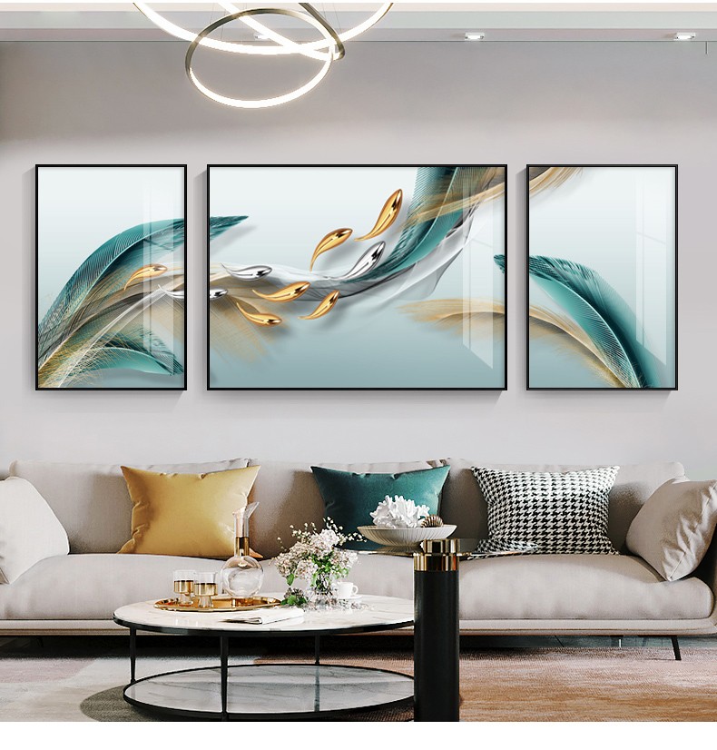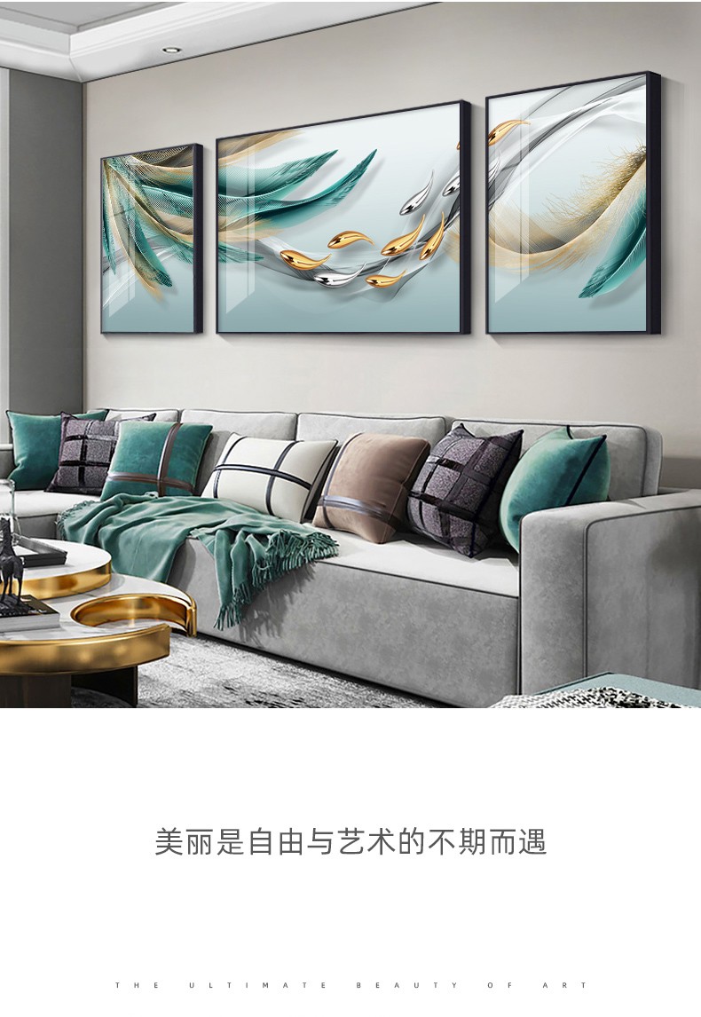 軒棠樹客間装飾画現代簡単壁画北欧風壁画ソファバックグランドウォールホテルロビー寝室掛画軽奢晶磁器画錦鯉送福抽象装飾画羽君はいつも14種類の小さいセット(左右40*60中間80*60)アルミ合金黒枠を持っています。