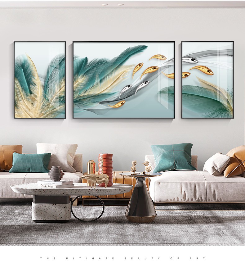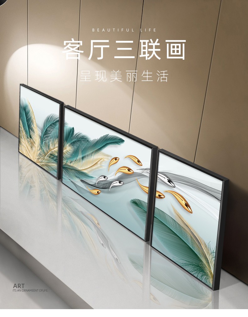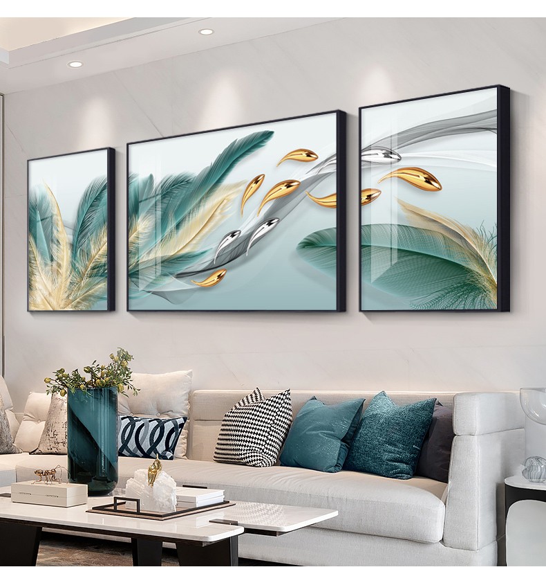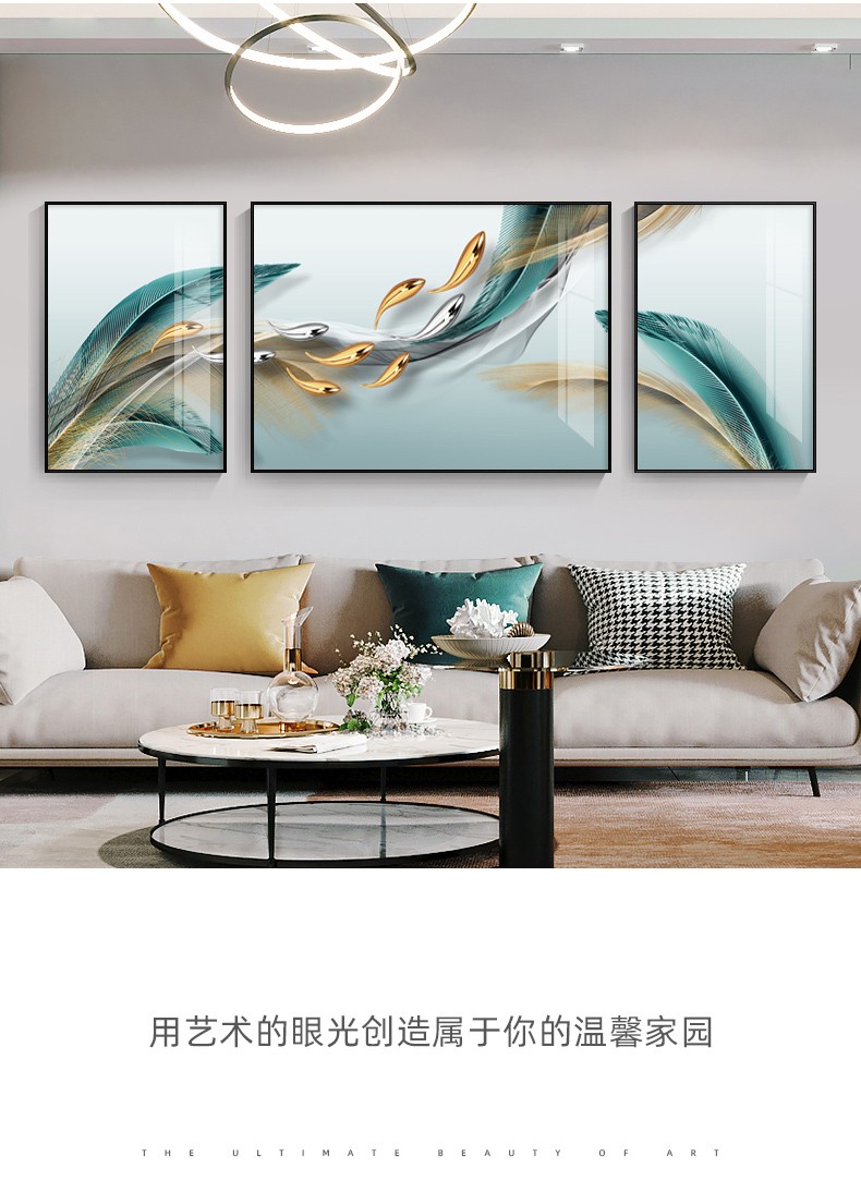 軒棠樹客間装飾画現代簡単壁画北欧風壁画ソファバックグランドウォールホテルロビー寝室掛画軽奢晶磁器画錦鯉送福抽象装飾画羽君はいつも14種類の小さいセット(左右40*60中間80*60)アルミ合金黒枠を持っています。
