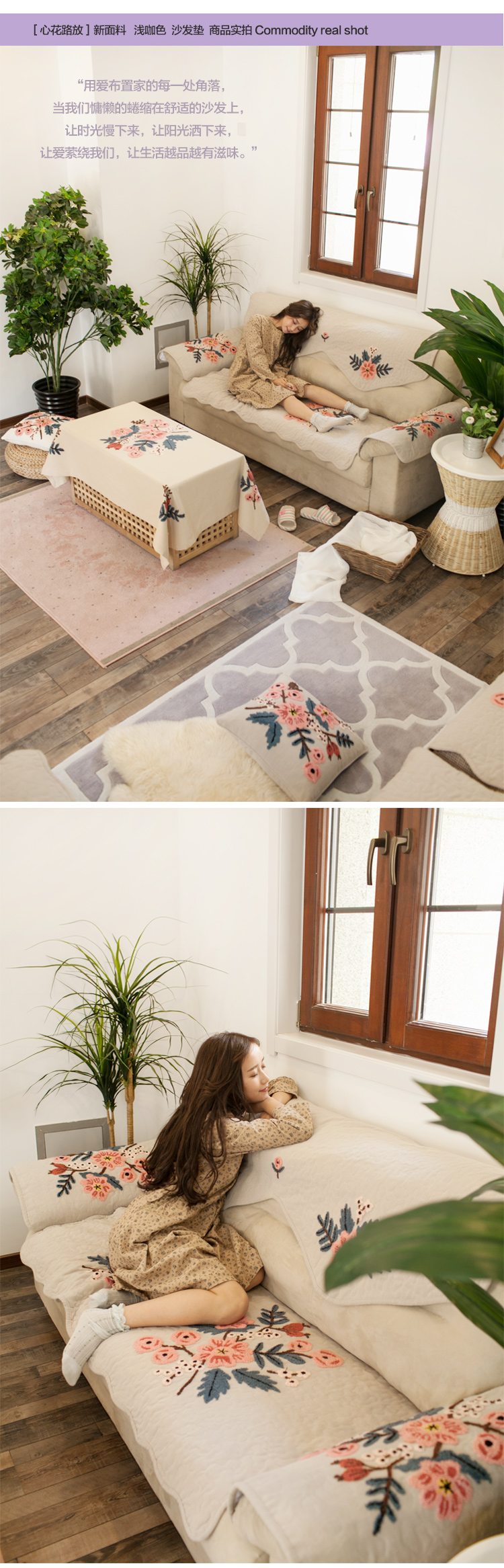 こんにゃく谷の色はシンプルで、現代刺繍のソファタオルは滑り止めです。ソファ·カバー四季通用の鲁繍田園布芸組合ソファマットの下色-浅カレー色70*72 cmクッション-片片