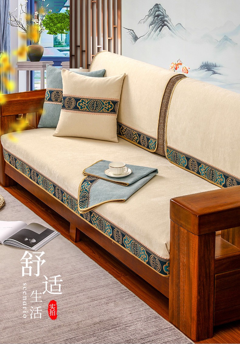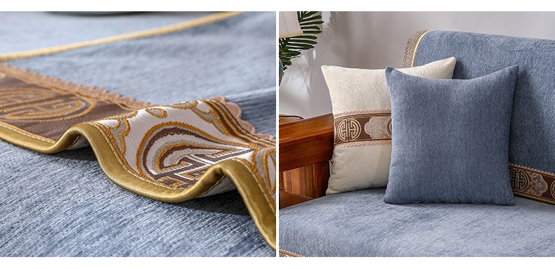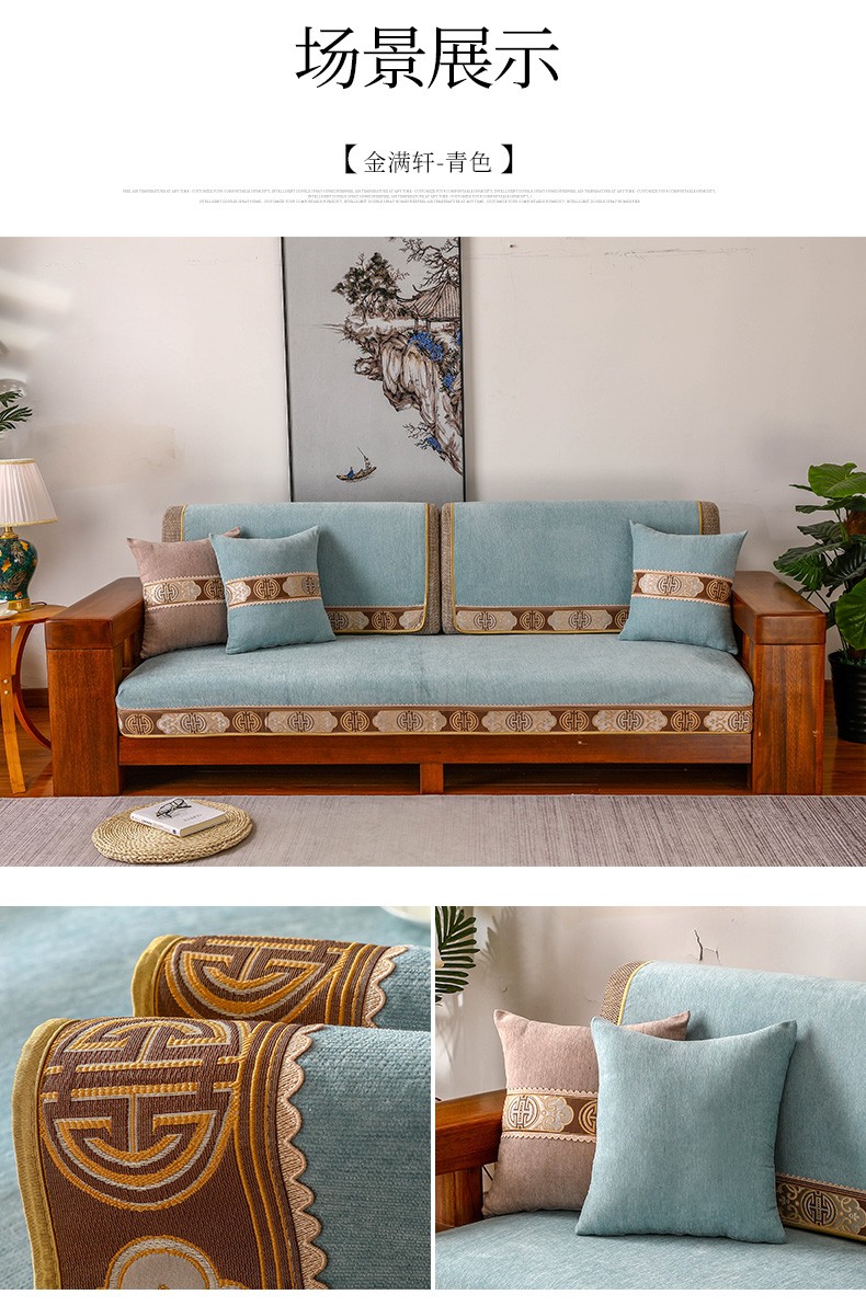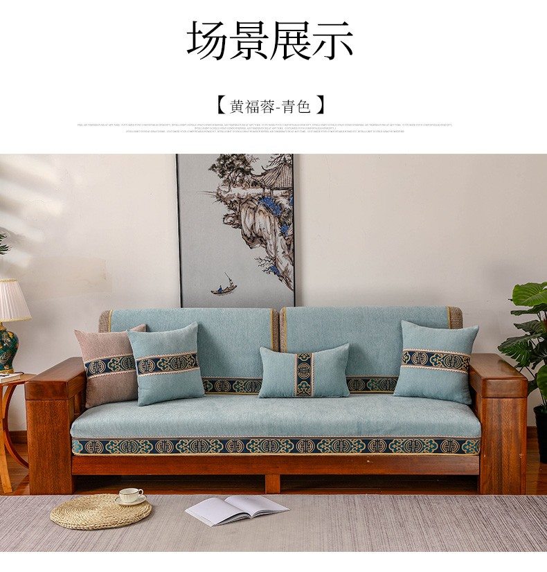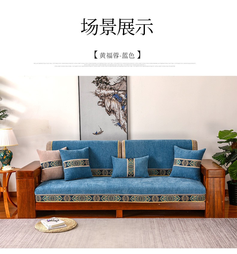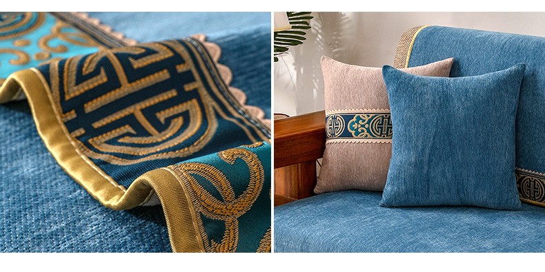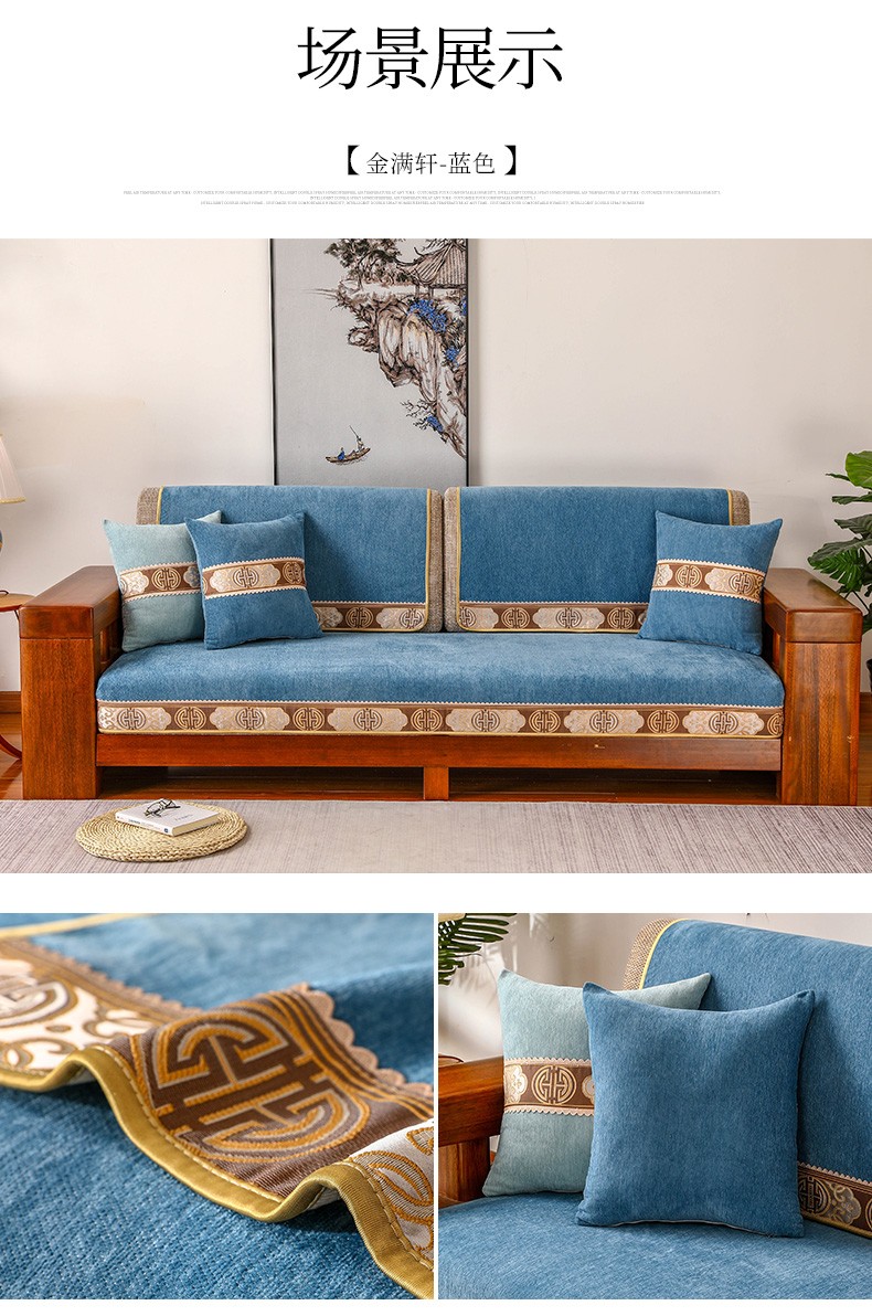 四季通用のオーダーメードの皮木布芸ソファカバークッション貴妃全カバー万能滑り止め北欧シンプル-海青片70*70 cm+17裾