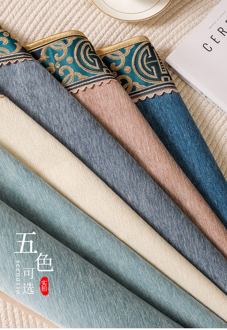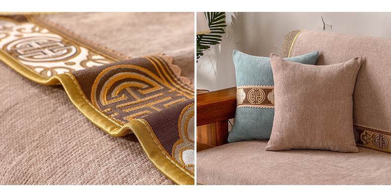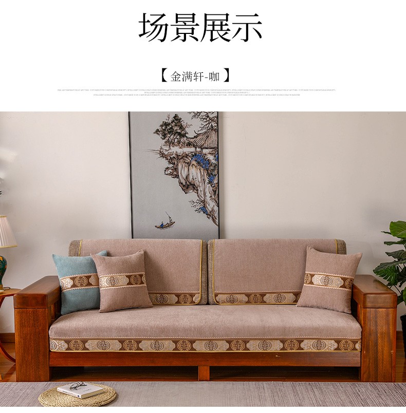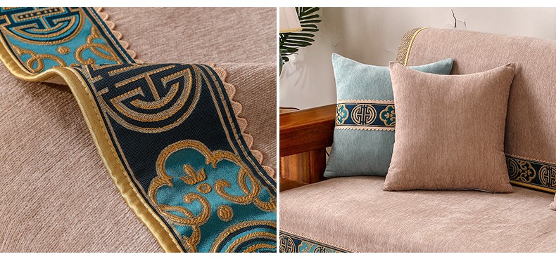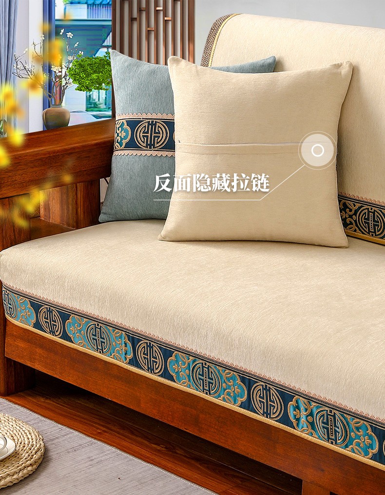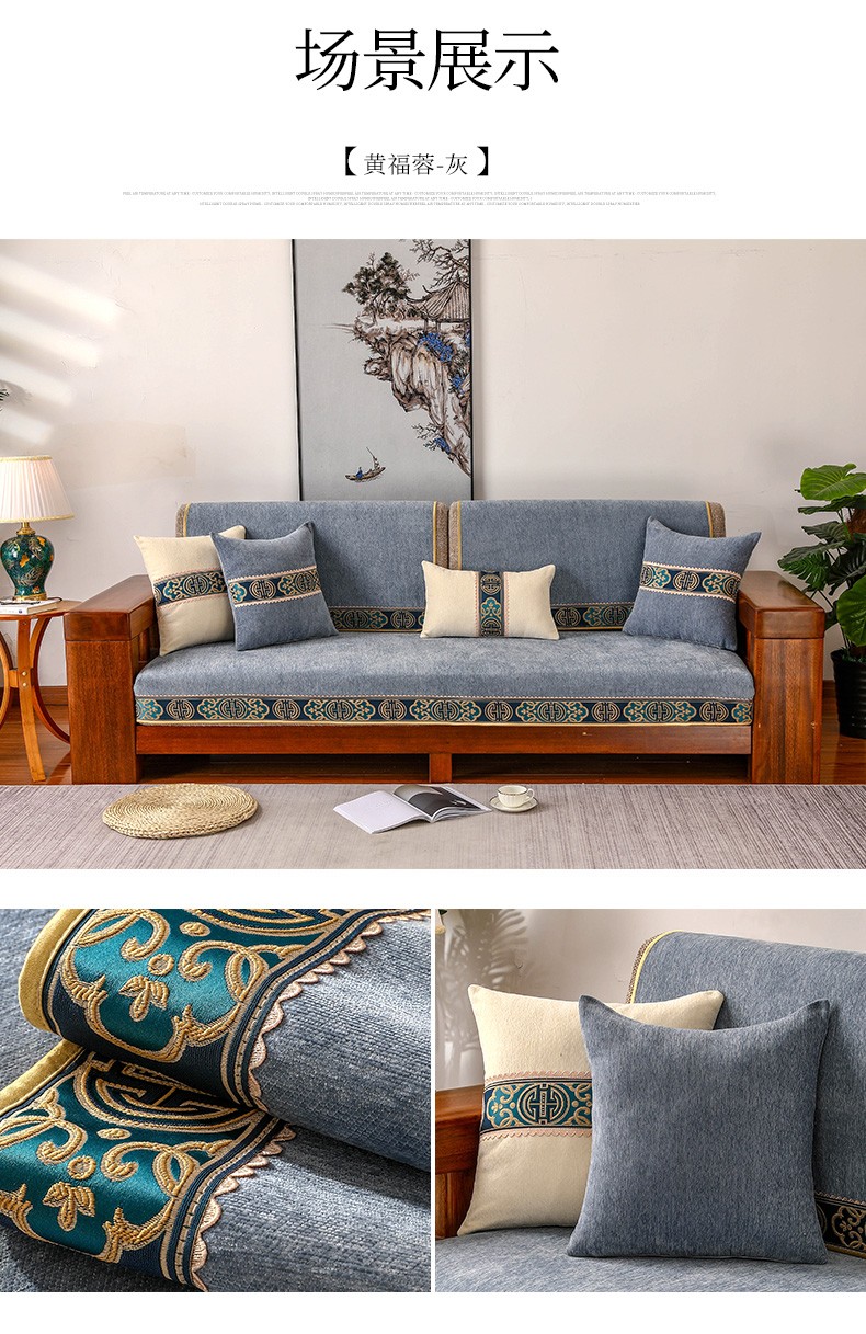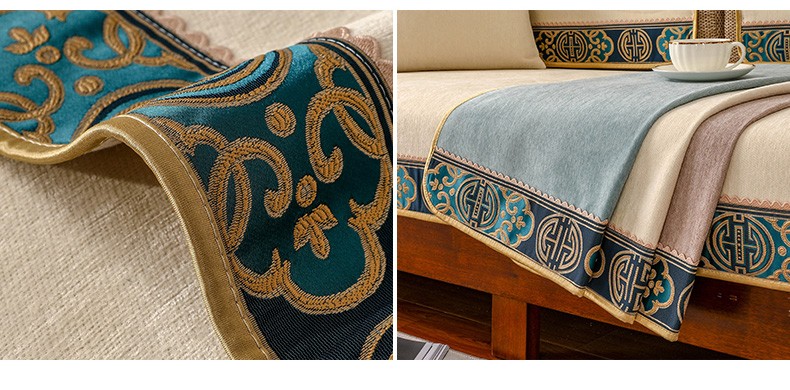 四季通用のオーダーメードの皮木布芸ソファカバークッション貴妃全カバー万能滑り止め北欧シンプル-海青片70*70 cm+17裾