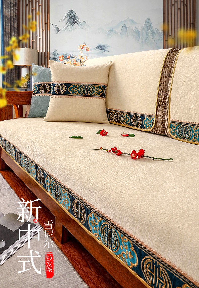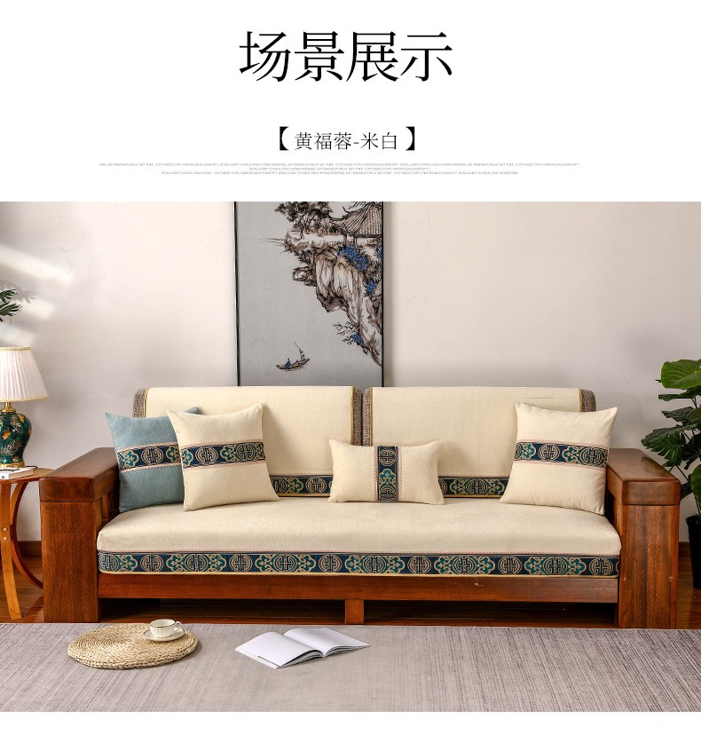 ニューシルク楽ソファクッションセット四季通用滑り止め布芸座マット新中国式ソファ·カバカスタム万能カバーカバーカバー布巾黄福蓉-米白70×70 CM一片