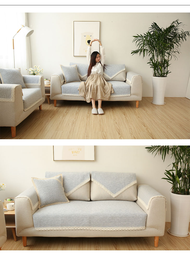 四季通用のオーダーメードの皮木布芸ソファカバークッション貴妃全カバー万能滑り止め北欧シンプル-海青片70*70 cm+17裾