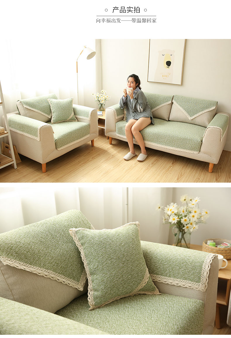 願をかける木ガットネネンファ·ファブリック·ソフフ·リビングセットソファセット四季簡約現代ソファタオルソファ·グリーンと枕カバー42*42 cm