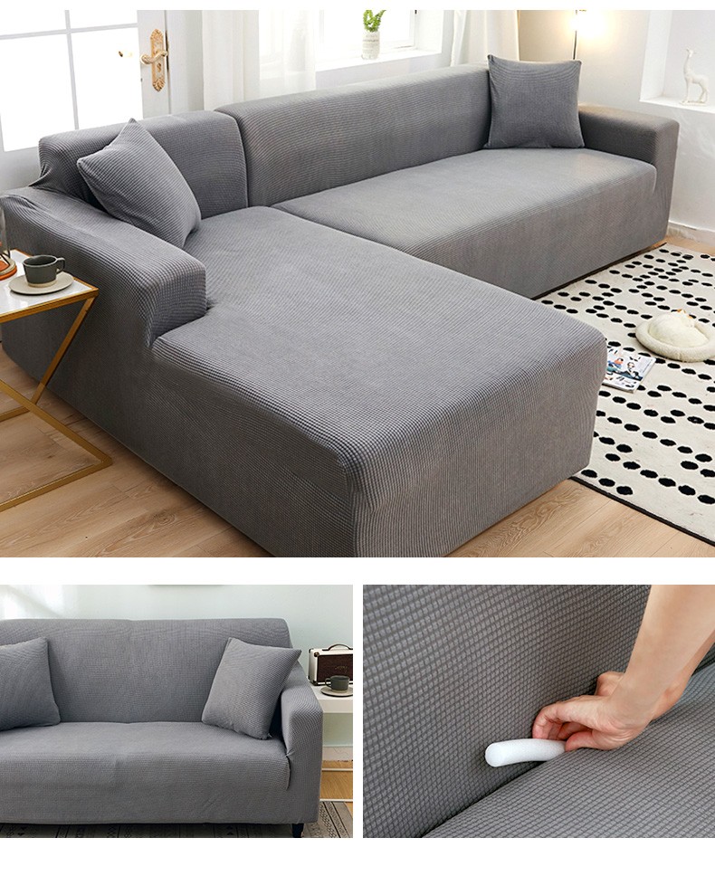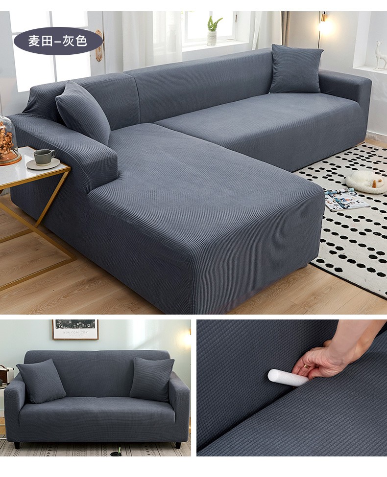 源優邦ソフフフルカバーフルセット怠け者ソファタオルカバー四季通用純色ソファクッション貴妃位全カバー厚い弾力滑り止めクッション防塵コーンフルネライトグレーMサイズ(ソファー長145-85 cm適用)普通二人位