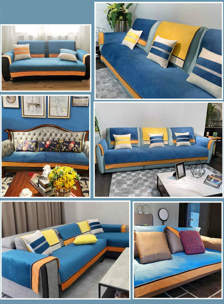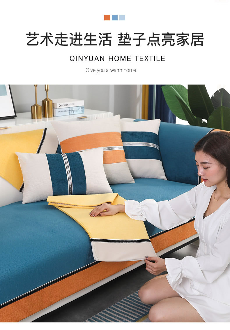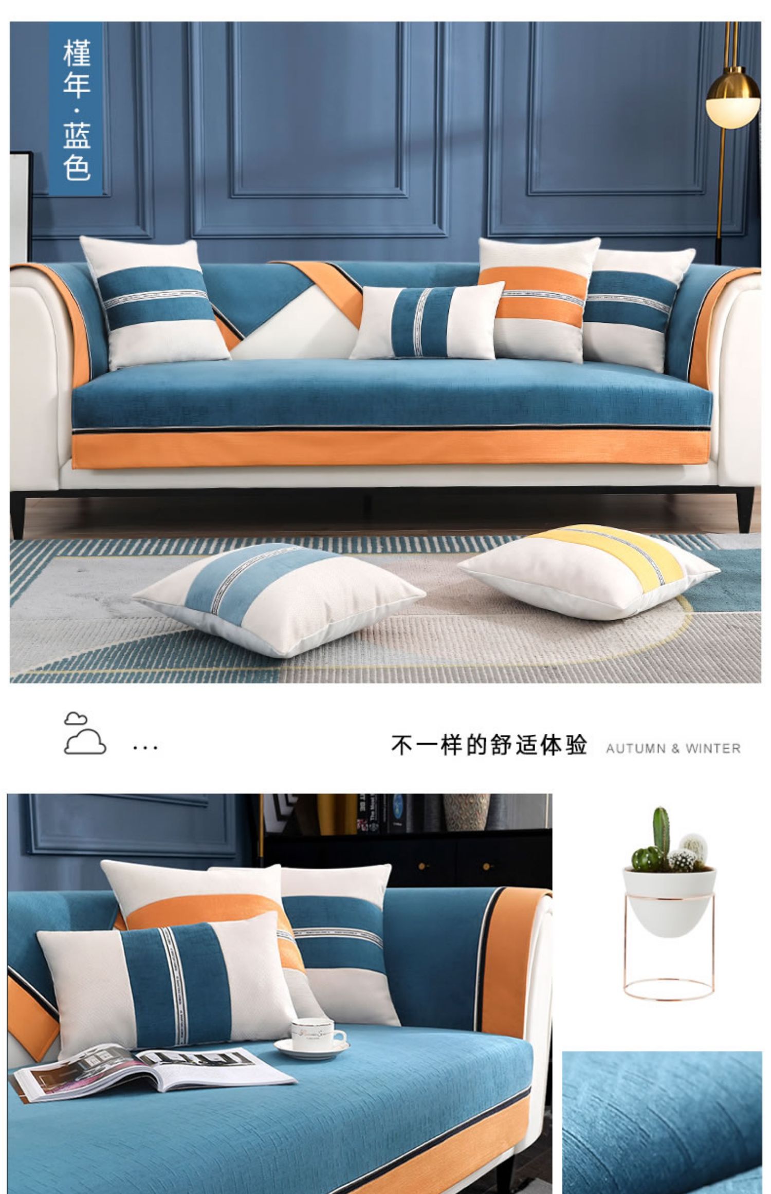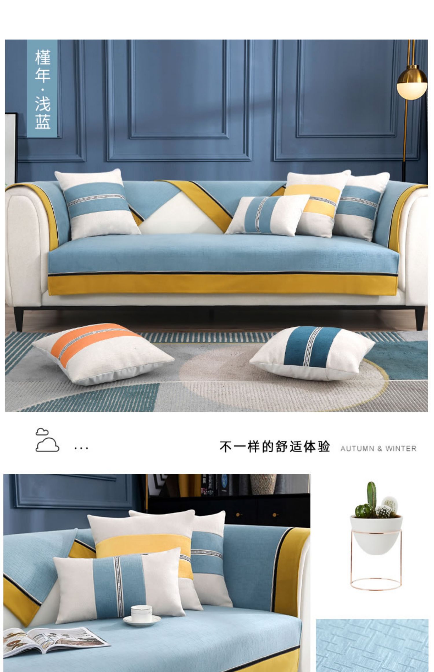 アイスカラーの軽い贅沢なソファーマット四季通用滑り止めクッション北欧シンプルな現代ソフ・カバーカバーのフルバックの年-青70*70 cm