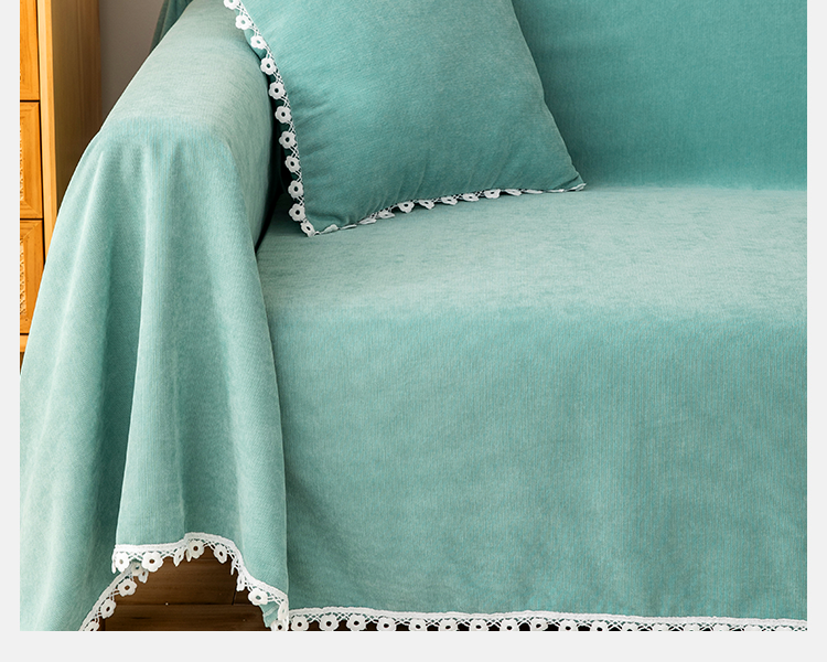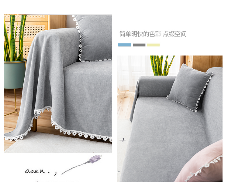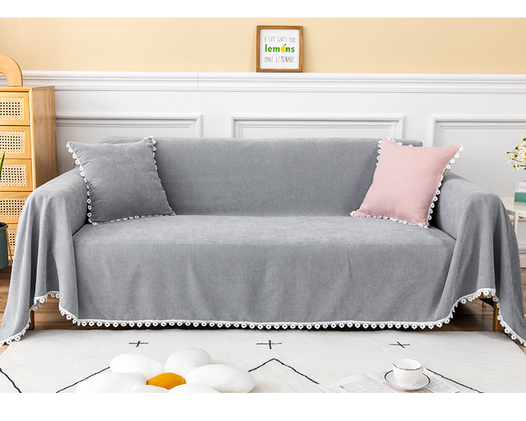 ニューシルクソファカバーフルバックファブリックタオルカバー四季ソファカバー全カバー北欧クッション三人セットソファ貴妃式通用無地-灰色(小レース)180*130 CM一枚【シングルソファに似合う】