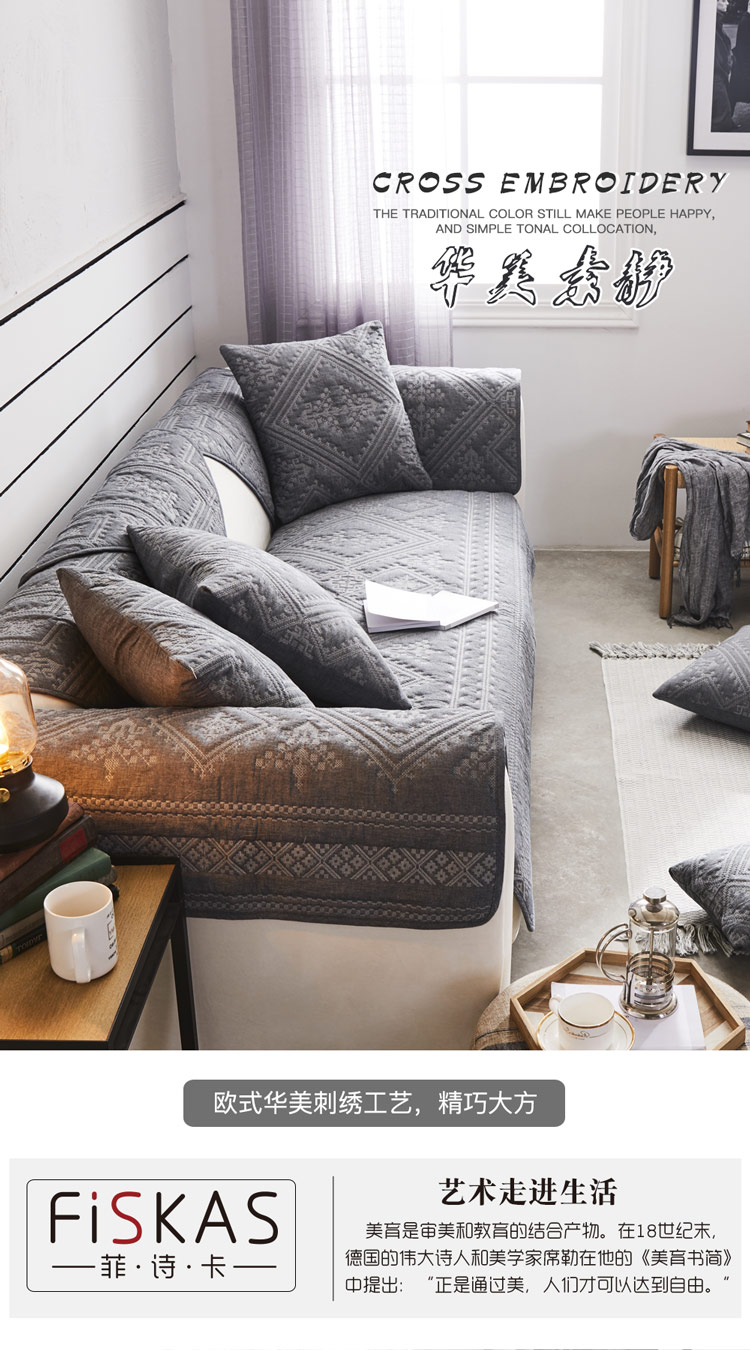 フィポカ北欧の軽い贅沢な刺繍ソファマット布芸水洗コートの精巧で美しい現代欧米式ソファァ·カバカバー四季通用クッションセット-畳刺繍灰45*45抱き枕カバー[枕芯を含まない]
