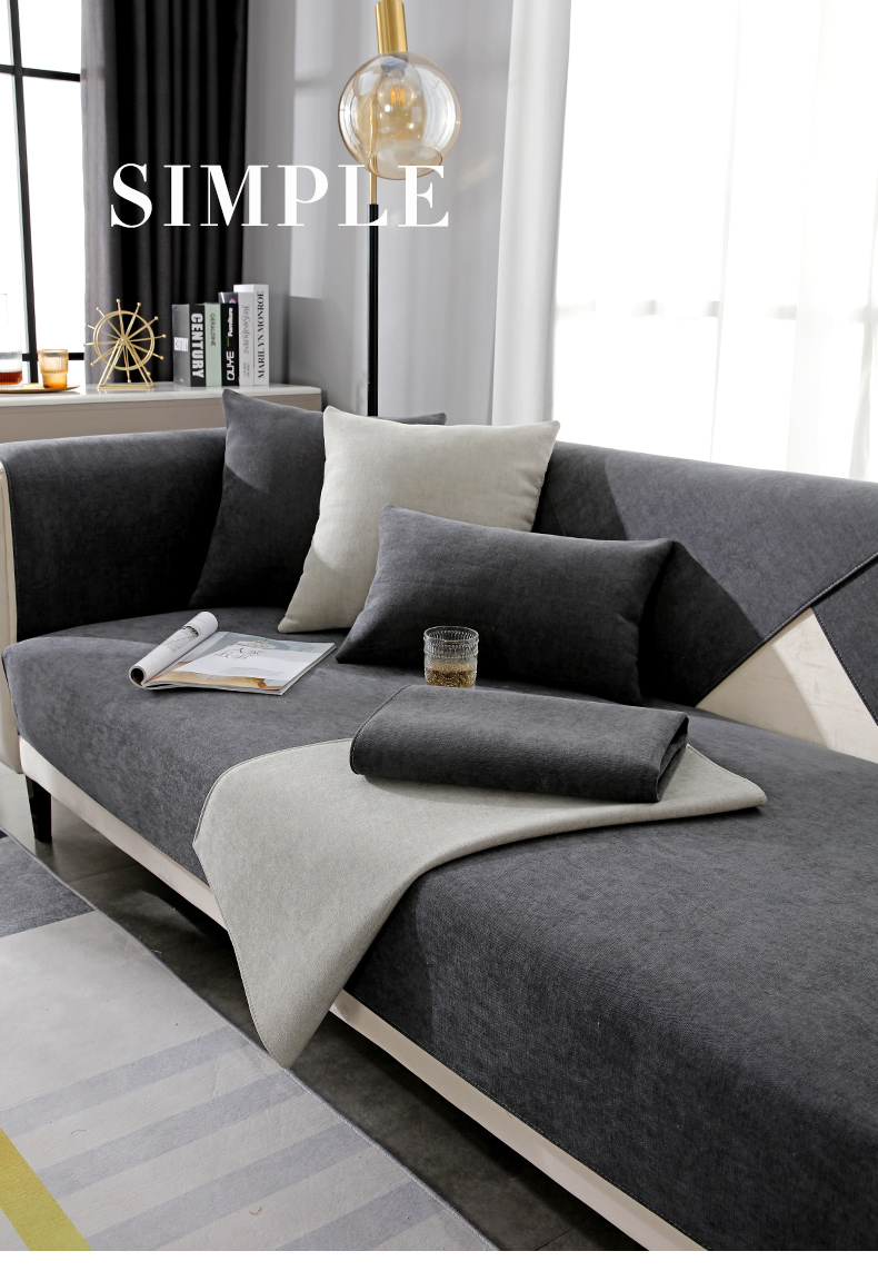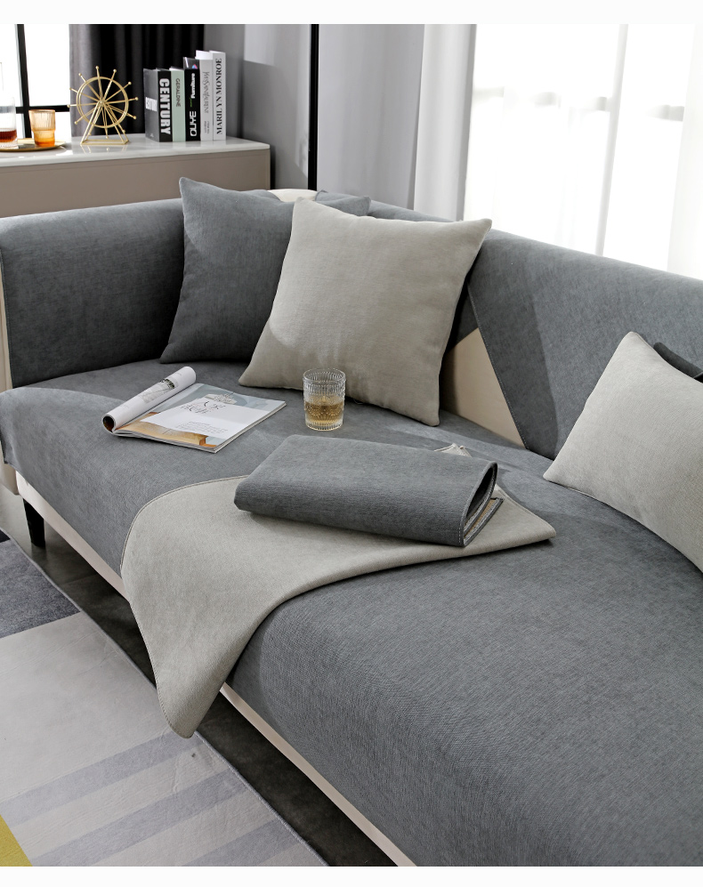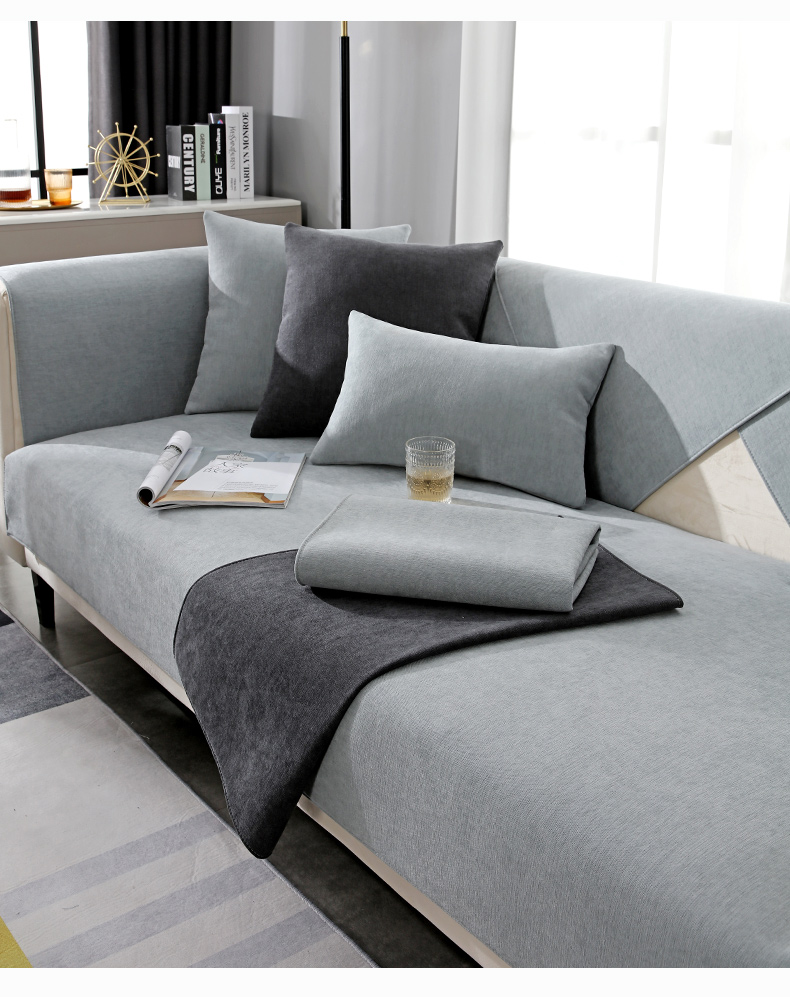 LNNZQZソファパッド四季通用の滑り止め灰色の布芸は、現代北欧客間の軽い背もたれソファ·カバのカバーが簡潔である。