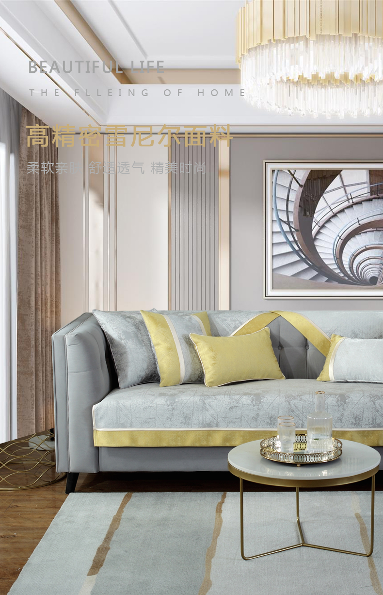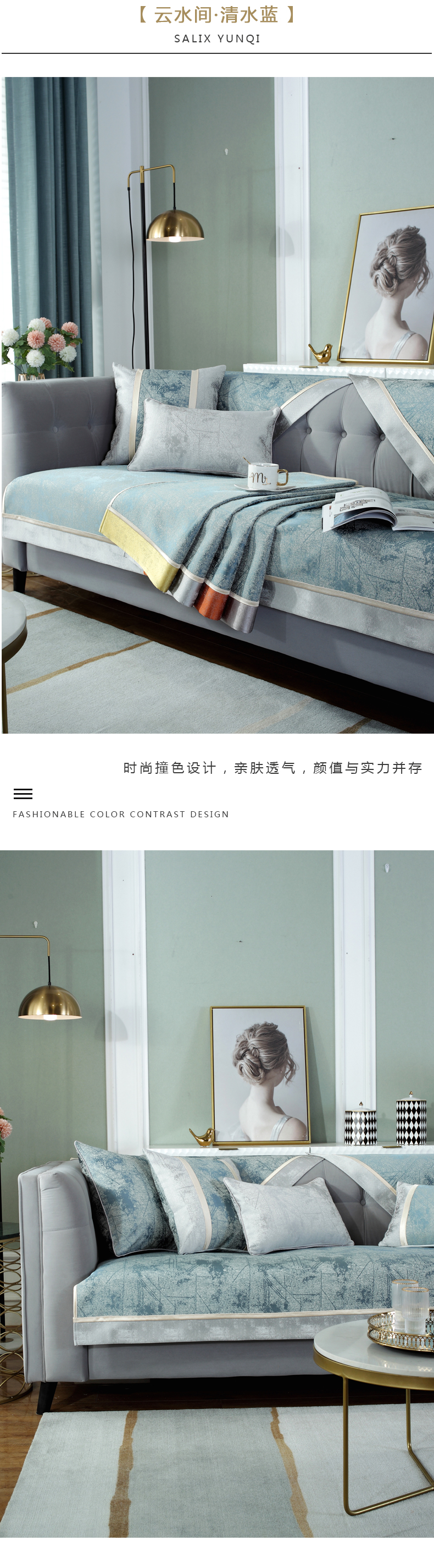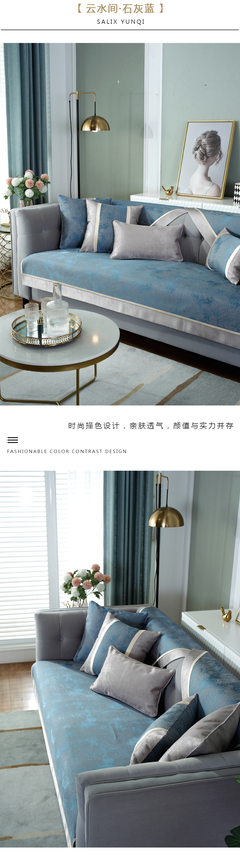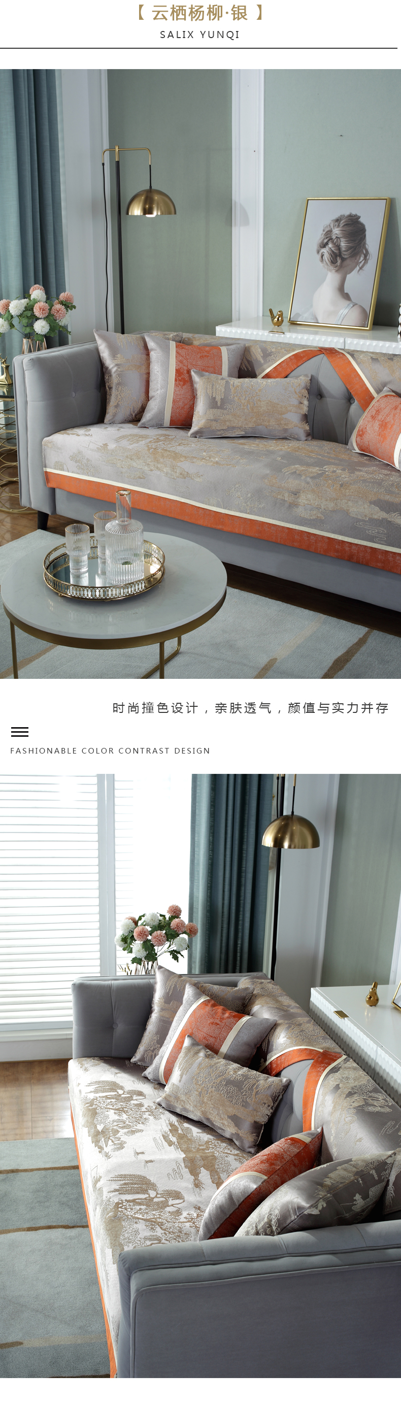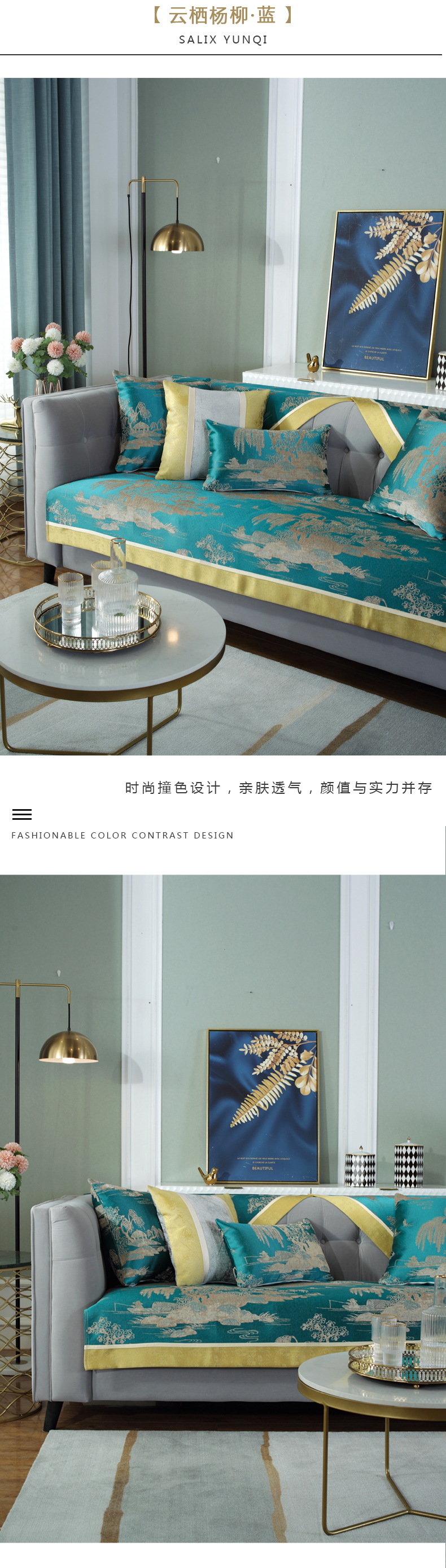 蘭麗坊 沙发垫シュニエ四季通用防滑时尚轻奢坐垫ソファーカバー罩简约现代靠背垫沙发罩巾组合贵妃位飘窗垫可定做 云栖杨柳银 宽90*长210cm一张【图片 价格 品牌 报价】-