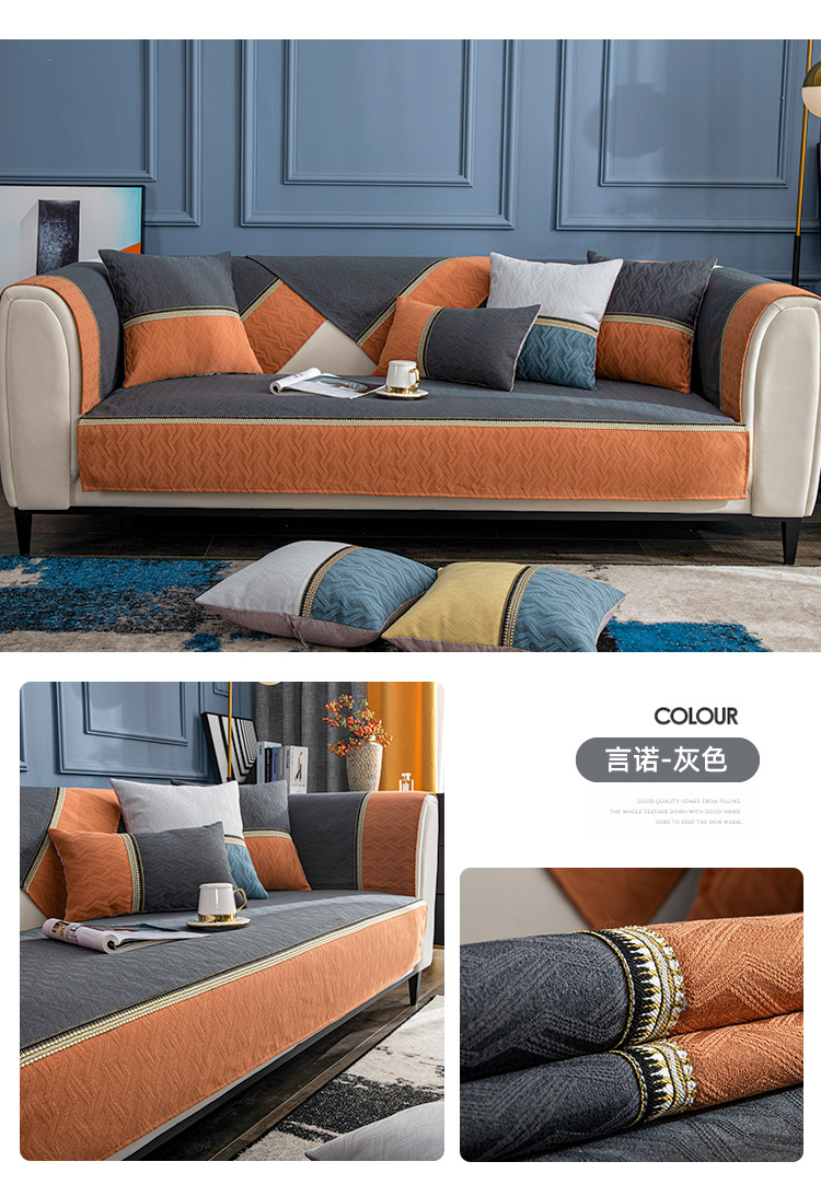 蘭麗坊ソファクッションセット四季通用の布芸滑り止めソファ·カバカバーフルバックシュニエシート123セットのソファータオル貴妃の席のクッションがカスタマイズできます。言諾-灰色90*120 cm/単条