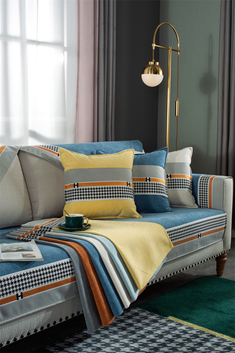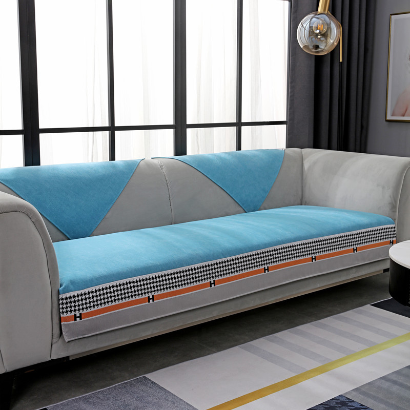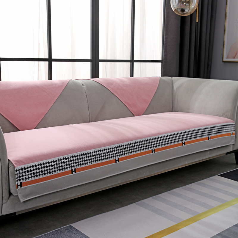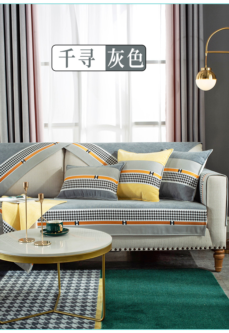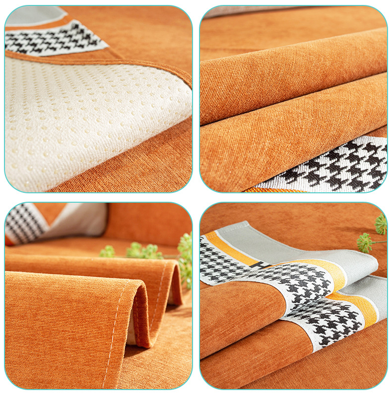 ソファマット四季通用滑り止め純色ソフエバーカバー北欧スタイル軽奢千鳥ゴソファァ·カバ千尋-蜜橙70*70 CM
