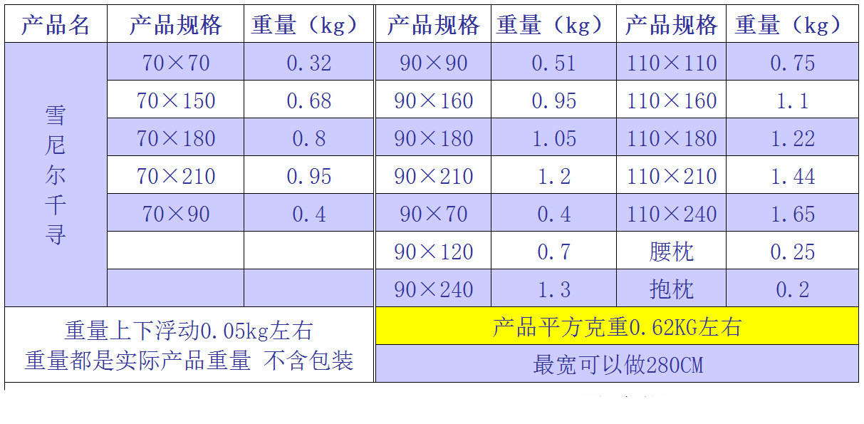 商品の毛の重さ
