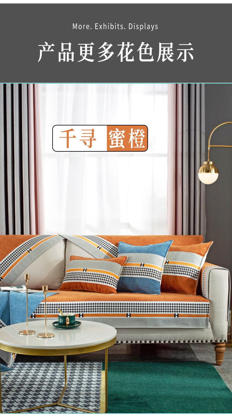 ソファパッド四季通用滑り止め純色ソフエバーカバー北欧スタイル軽奢千鳥ゴソファ·カバ千尋-蜜橙70*70 CM【写真価格ブランド見積】-