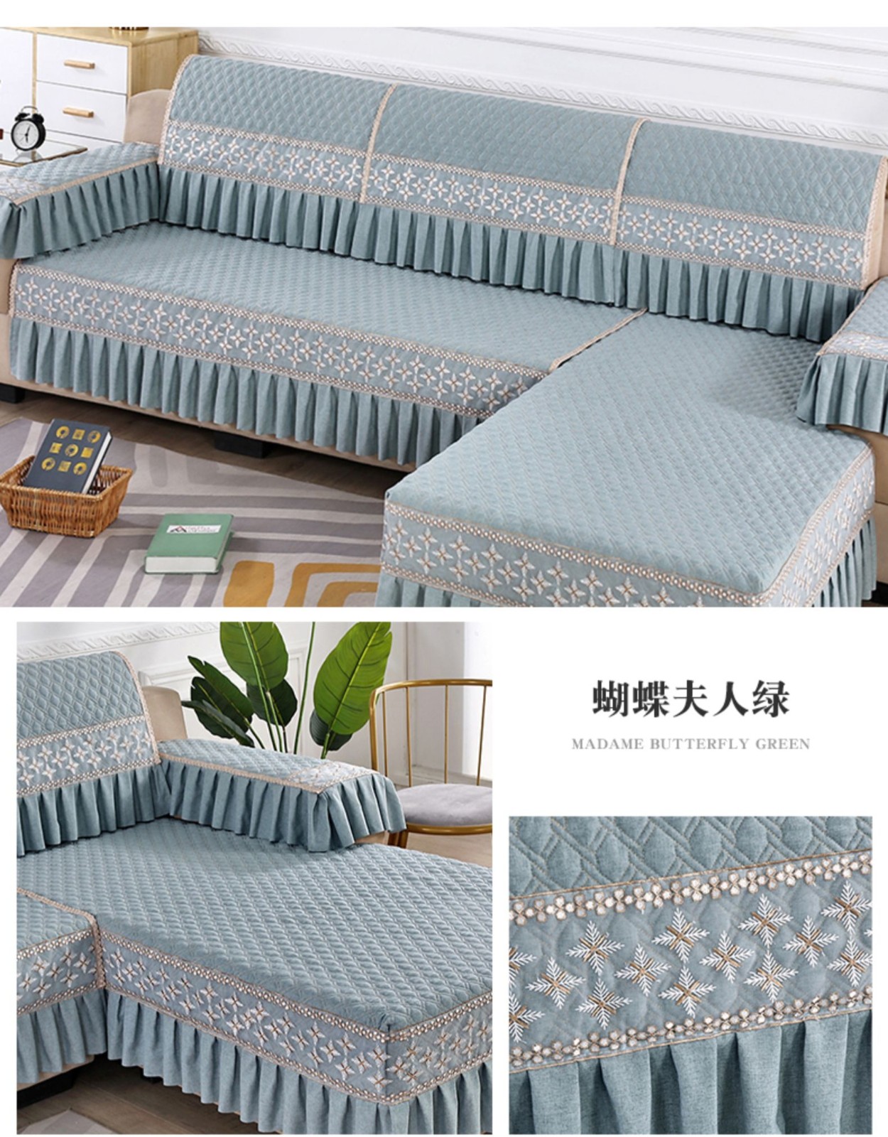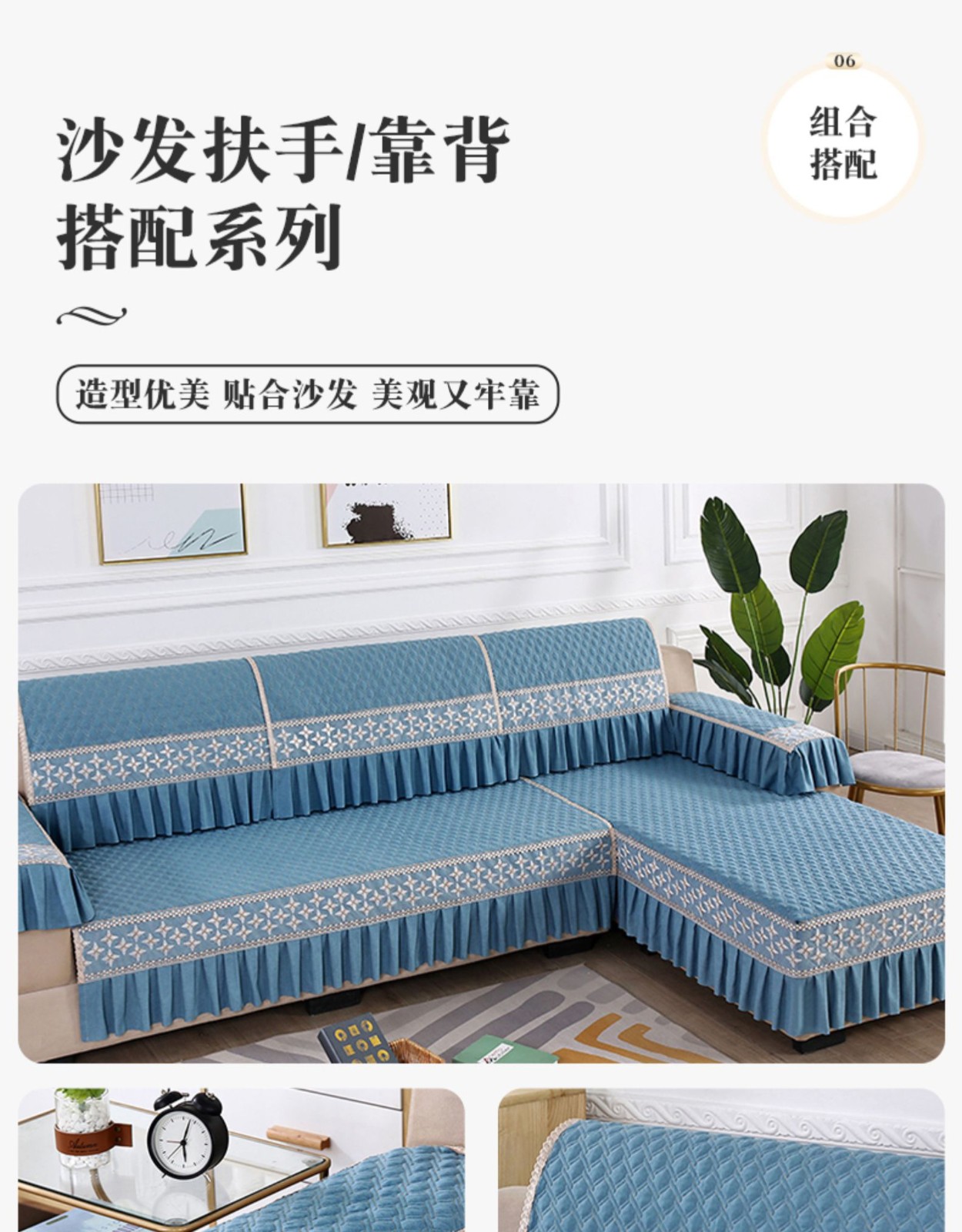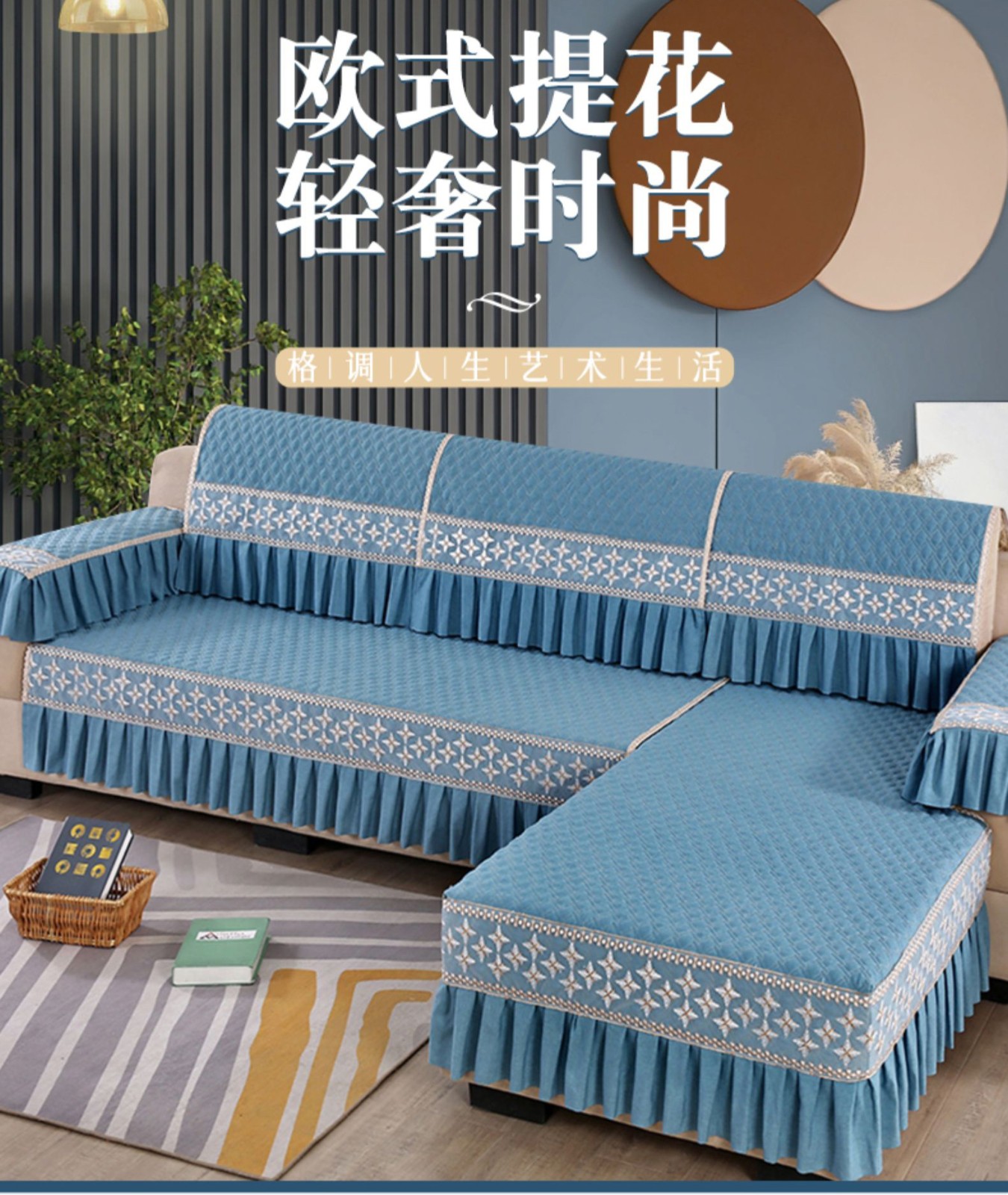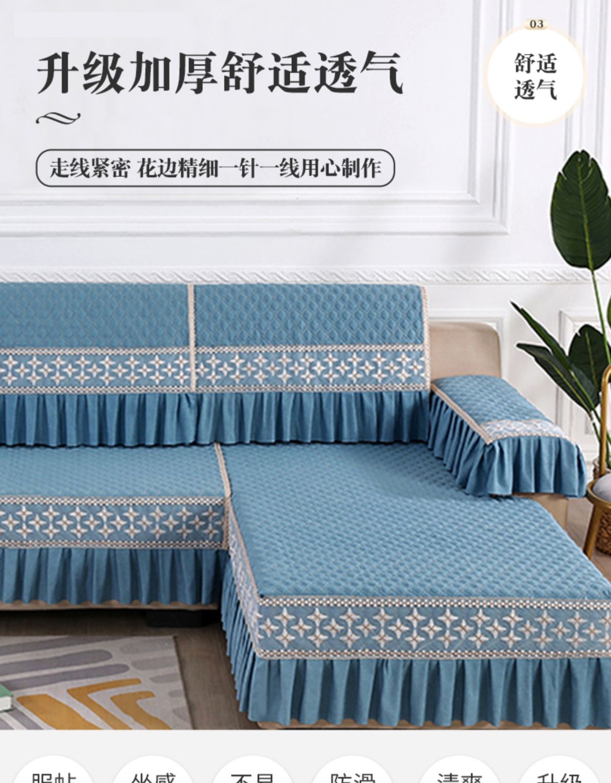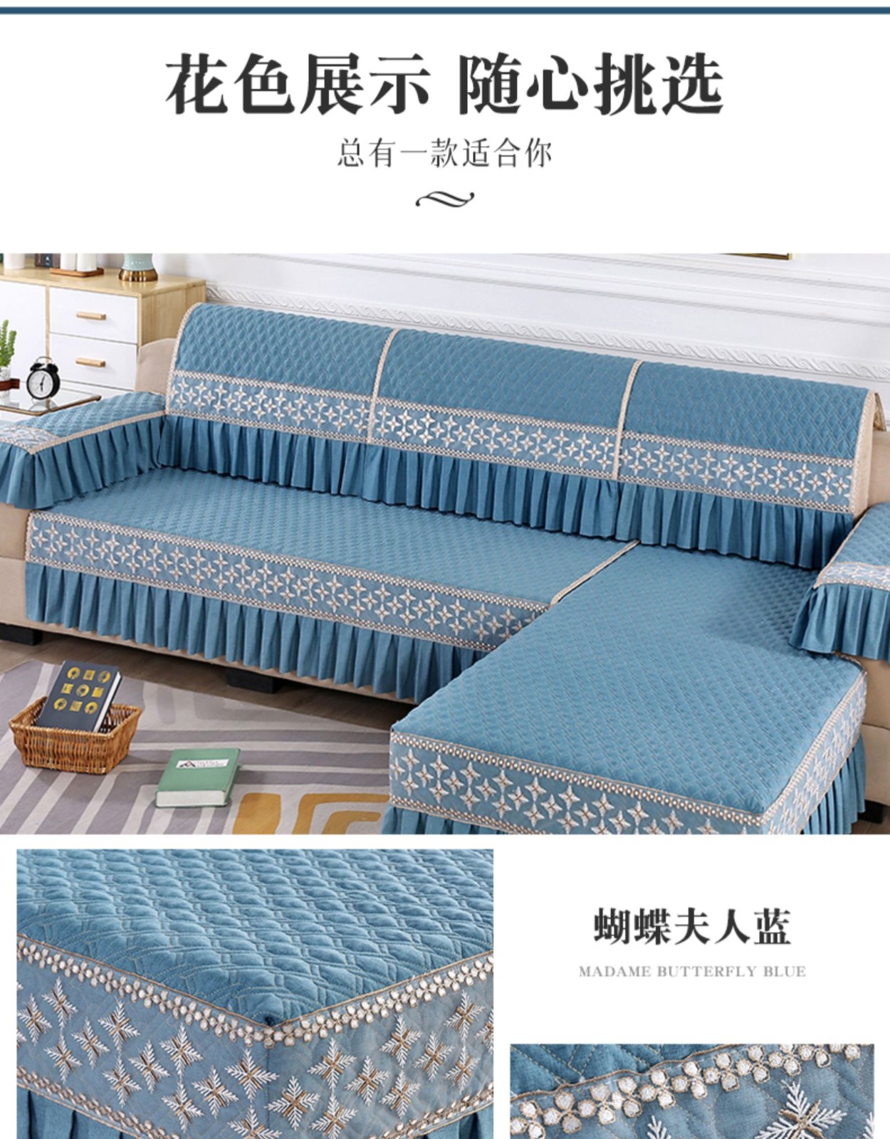 GVILMONブランド北欧简约ソファークッション冬の四季通用の厚み滑り止めマット一贵妃フルバックソファ·カバカバー四季の芳华ブルーは、280长のソファーマットセットに适しています。