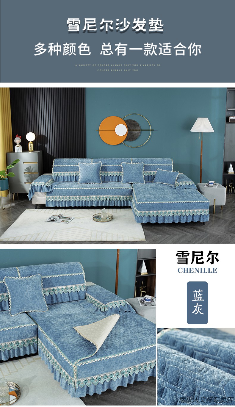 南極人ソファマット四季通用滑り止め座布団北欧シンプルシュニエソファカバー万能カバー秋冬クッション貴妃セットカバー布巾カスタマイズシュニエブルーグレー70*150 cm(二人掛け)