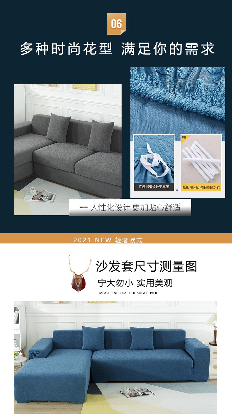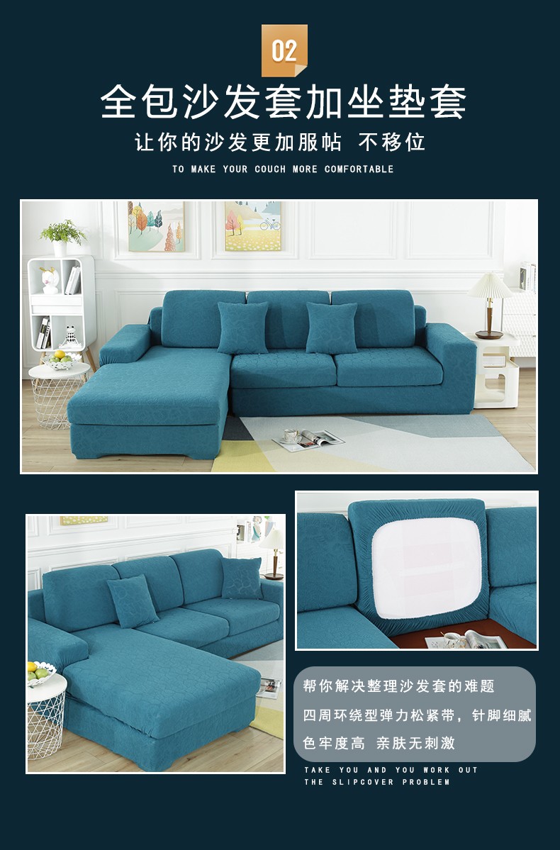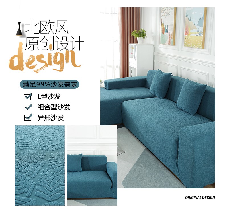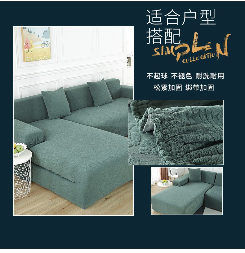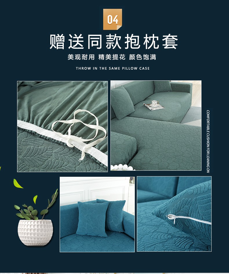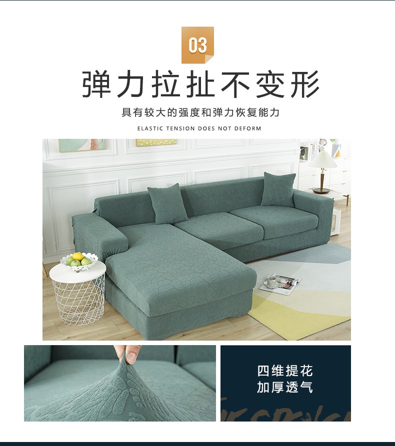 四季帘华ソファカバ弾力ソファカバカバー全包通用贵妃式组合ソファカバー四季通用ソファマットカバー厚め提花ソファカバー全盖ソファマット叶提花-抹茶绿三人位Lサイズ【190-230 cm】
