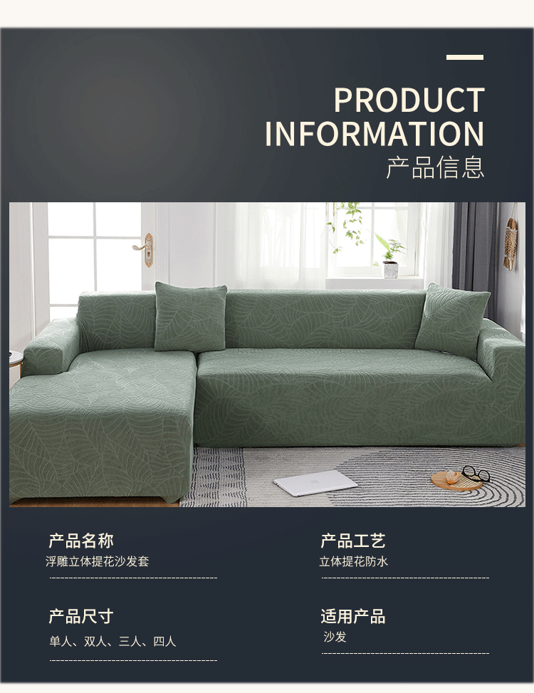 パブ厚手防猫抓ソファカバー四季通用弾力防滑毛輪彫刻ソファマット貴妃式コンビネーションソファタオルカバー北欧高級軽微防水大葉-湖藍(短防水)シングル(サイズは長さ区間)90-140 cm単品