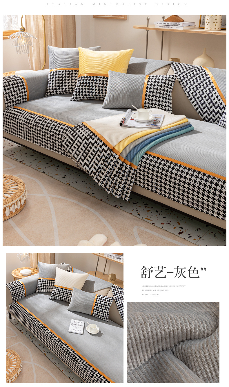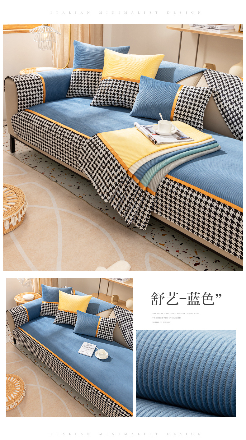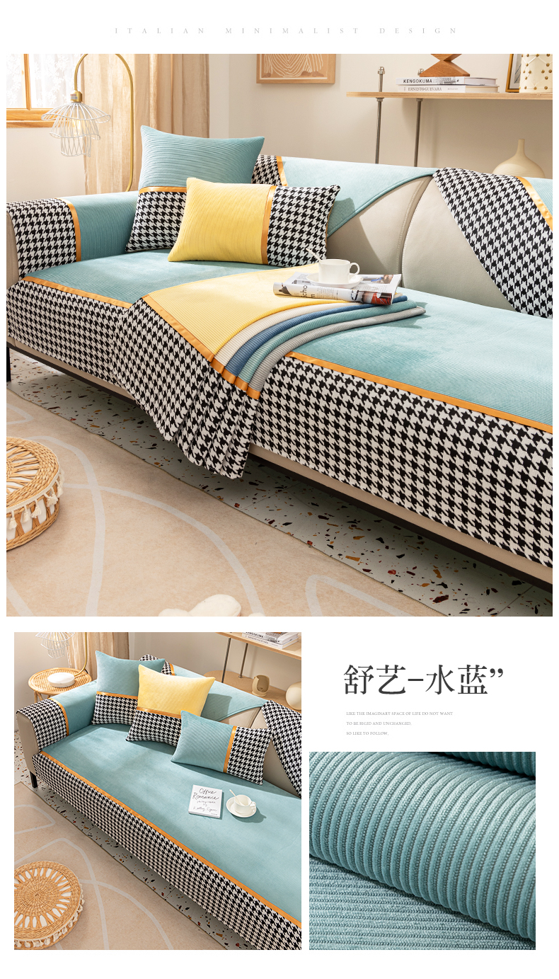 今后现代简约ソファマット2022新品千鸟格ソファカバー座布団四季通用ソファカバーカバー全カバー千鸟格-グリーン【セット一】お二人様+贵妃位3枚セット