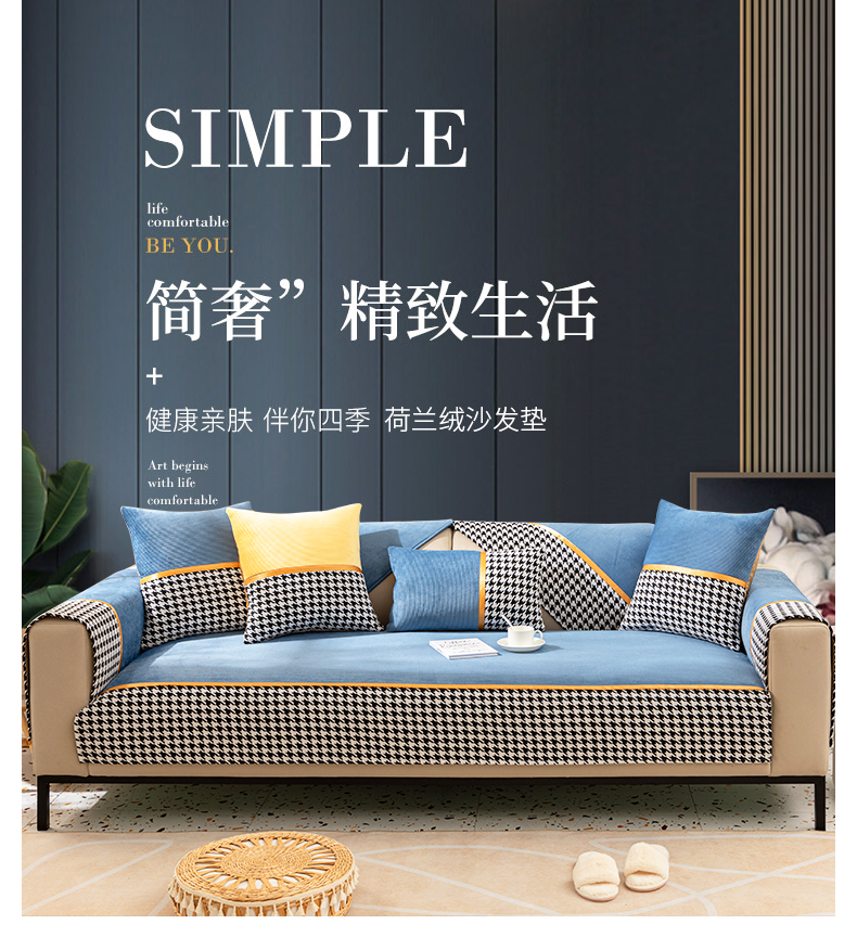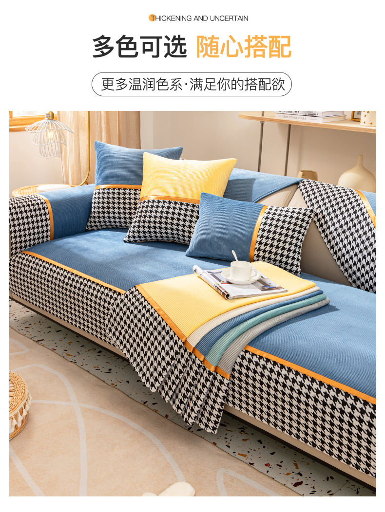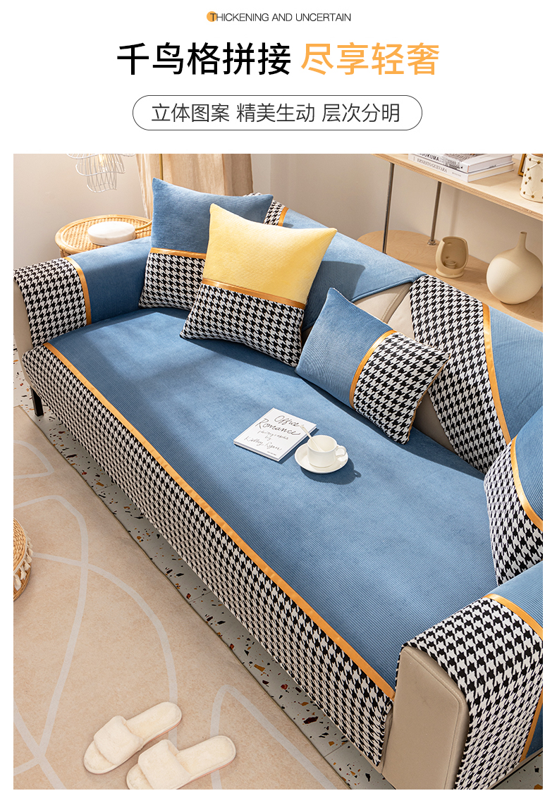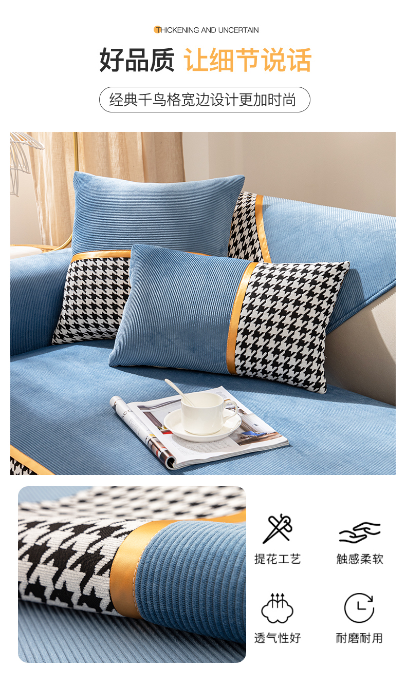 今后现代简约ソファマット2022新品千鸟格ソファカバー座布団四季通用ソファカバーカバー全カバー千鸟格-グリーン【セット一】お二人様+贵妃位3枚セット