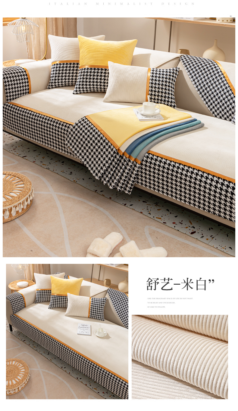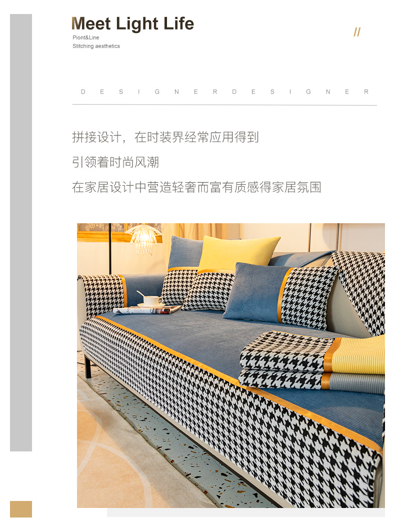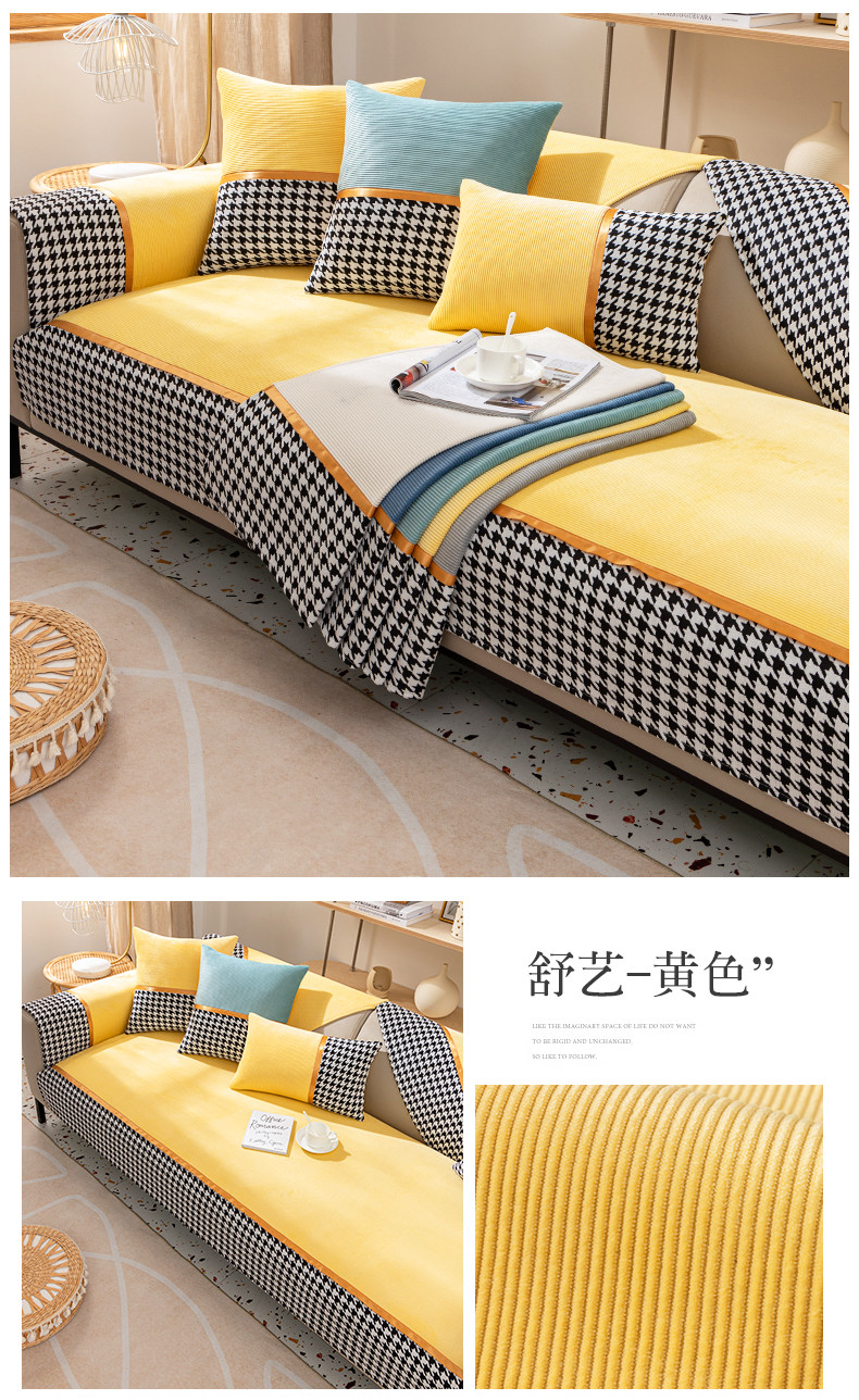 今后现代简约ソファマット2022新千鸟格ソファカバー座布団四季通用ソファカバーカバー全カバー千鸟格-绿色【セット一】二人位+贵妃位3枚装【写真価格ブランドオファー】-