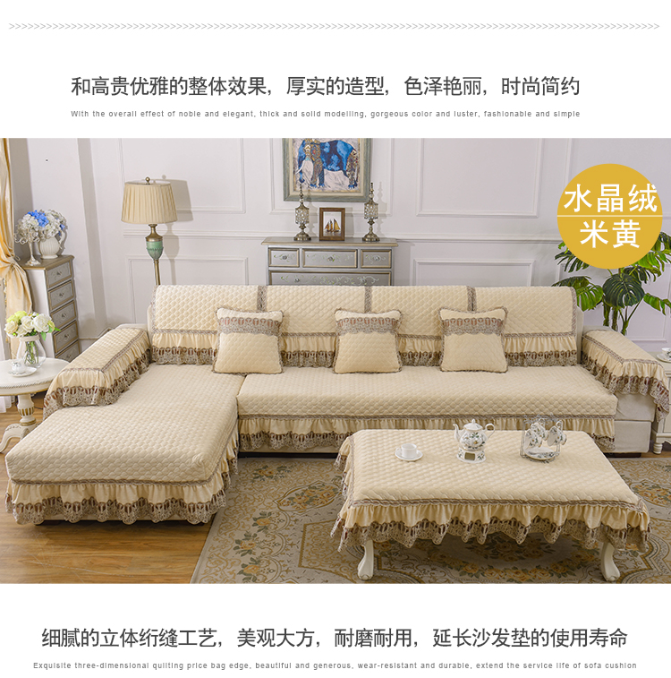 雅鹿家纺北欧革张的ソファマット四季防滑座布団全盖组合现代布艺贵妃ソファカバー全包套子组3位ソファカバー四季通用水晶Frannel米黄セット3(适合2.6-2.9米皮质ソファ