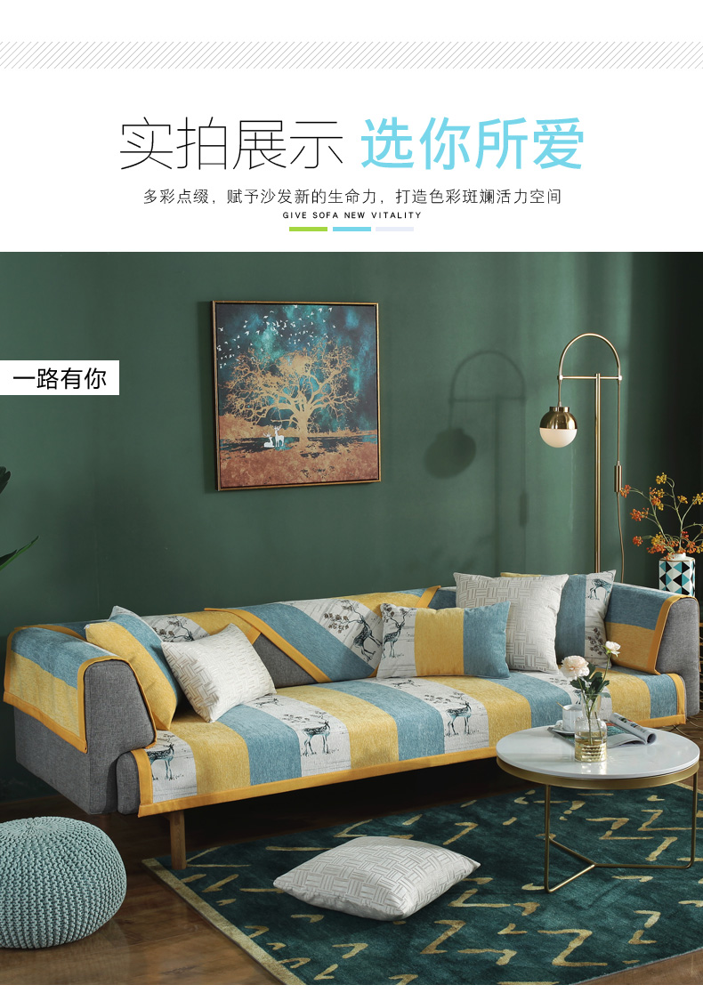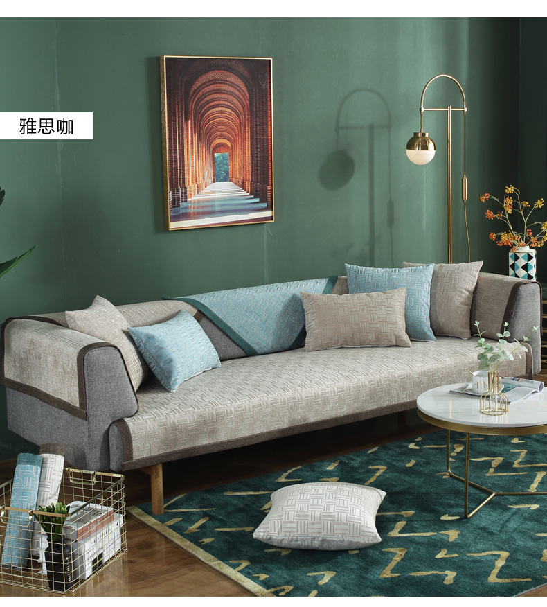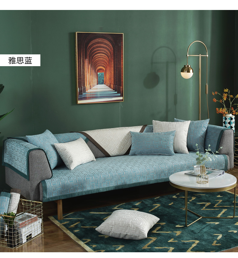 TTQQNY品牌防滑ソファー垫布艺四季通用北欧简约シュニエ全包皮套罩巾盖布 雅思蓝 定制专拍联系客服
