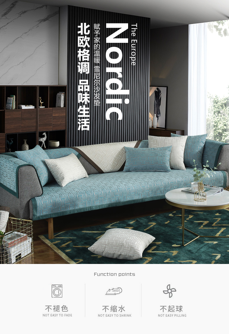 TTQQNY品牌防滑ソファー垫布艺四季通用北欧简约シュニエ全包皮套罩巾盖布 雅思蓝 定制专拍联系客服【图片 价格 品牌 报价】-