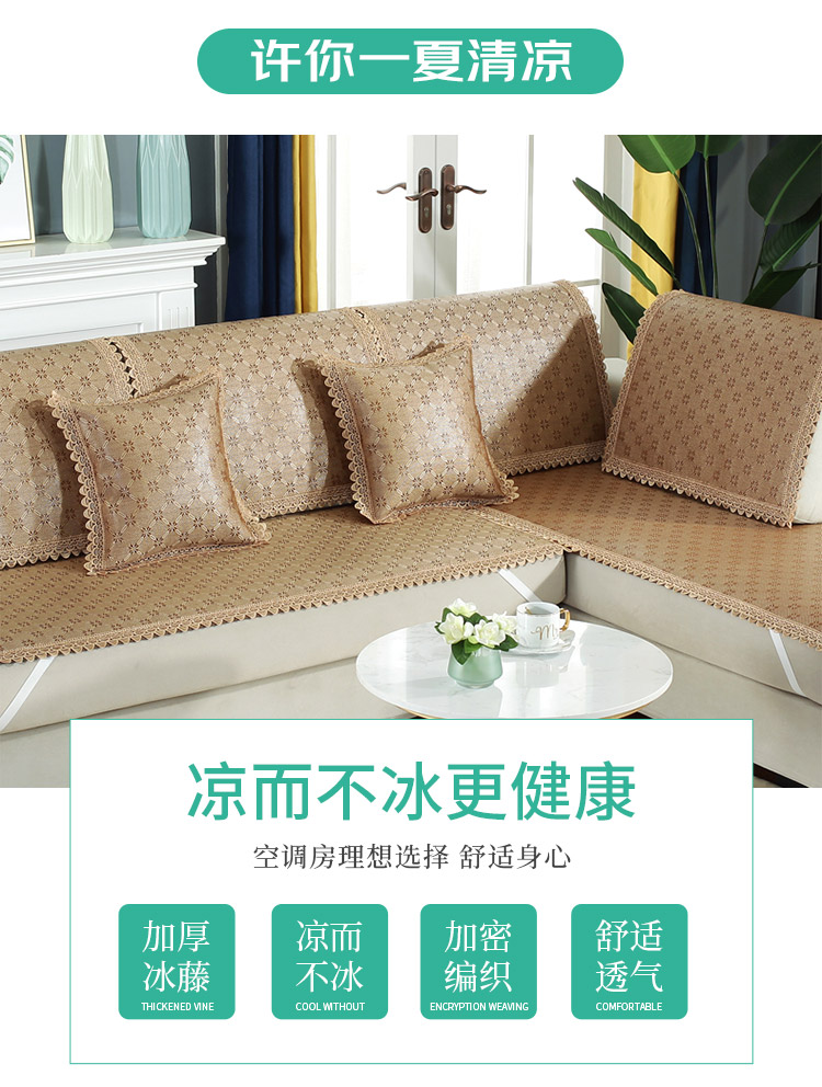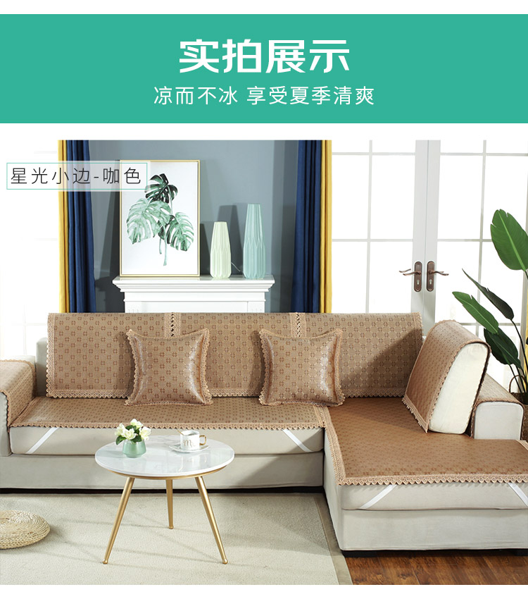 钟爱一生 沙发垫坐垫子 夏天冰藤席防滑ソファーカバー罩巾贵妃沙发凉席可定制 星光-咖色70*150cm单条