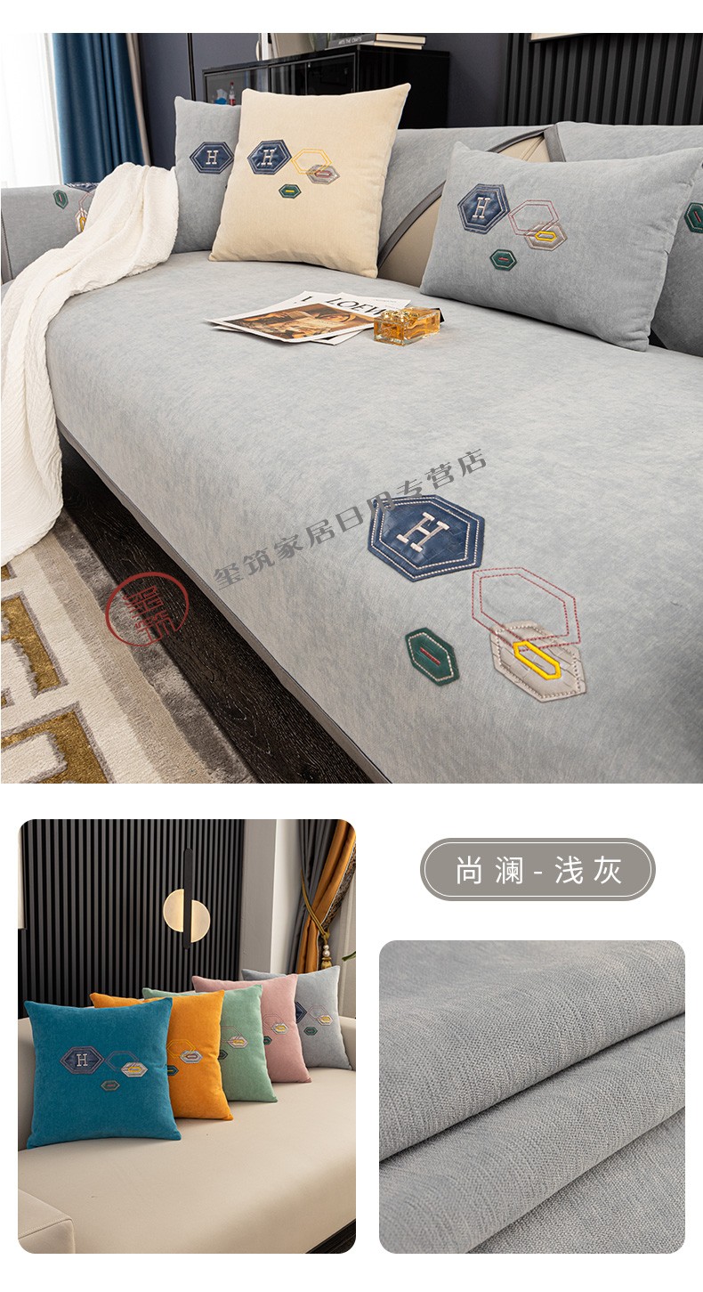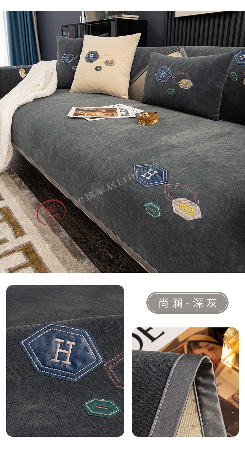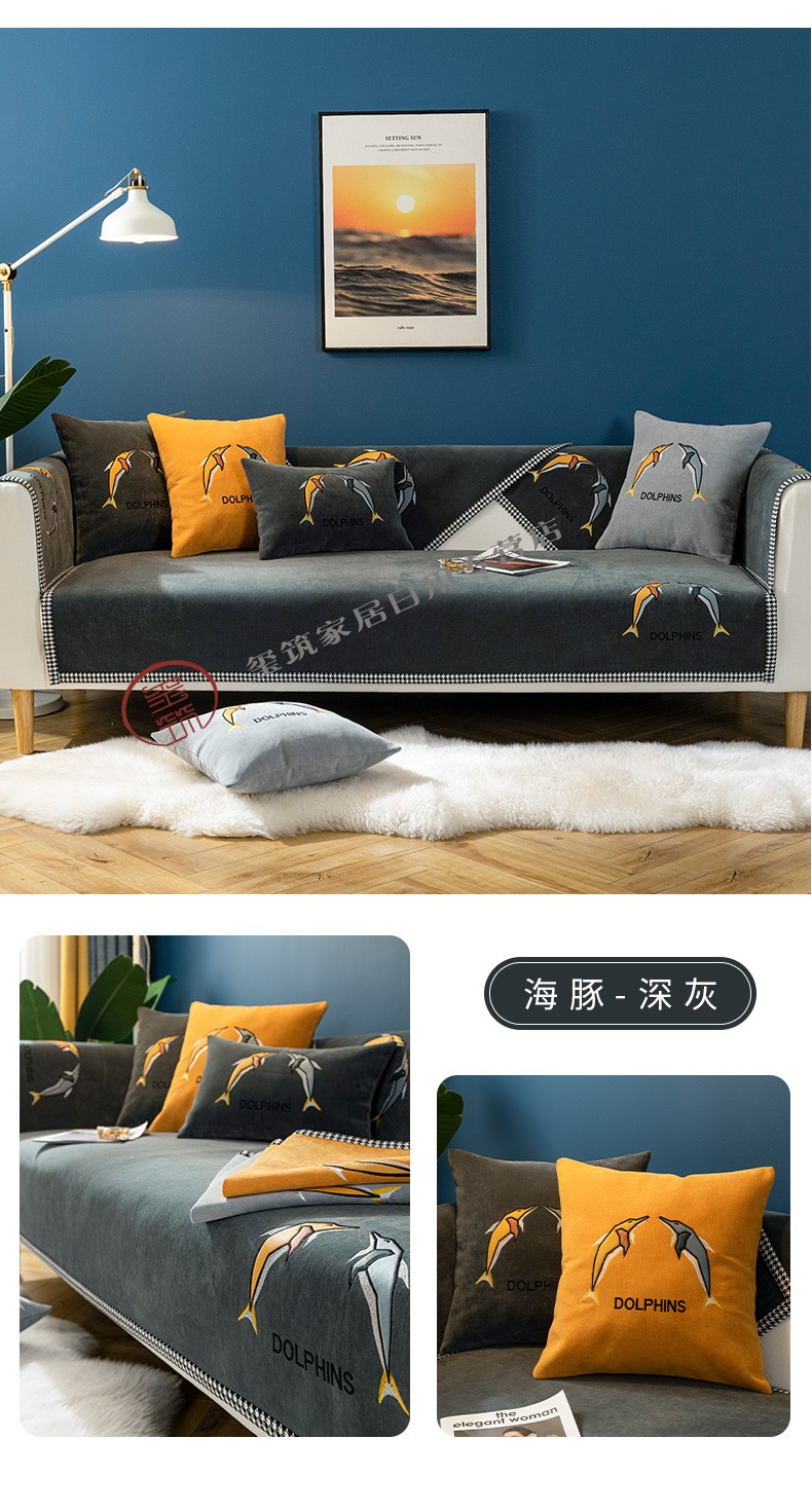 婴儿フランネル沙发垫四季通用防滑轻奢坐垫子北欧简约风格套罩巾 YAS-尚澜-深灰 抱枕套45*45