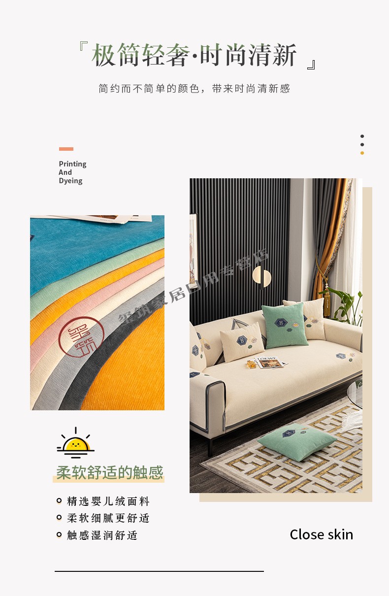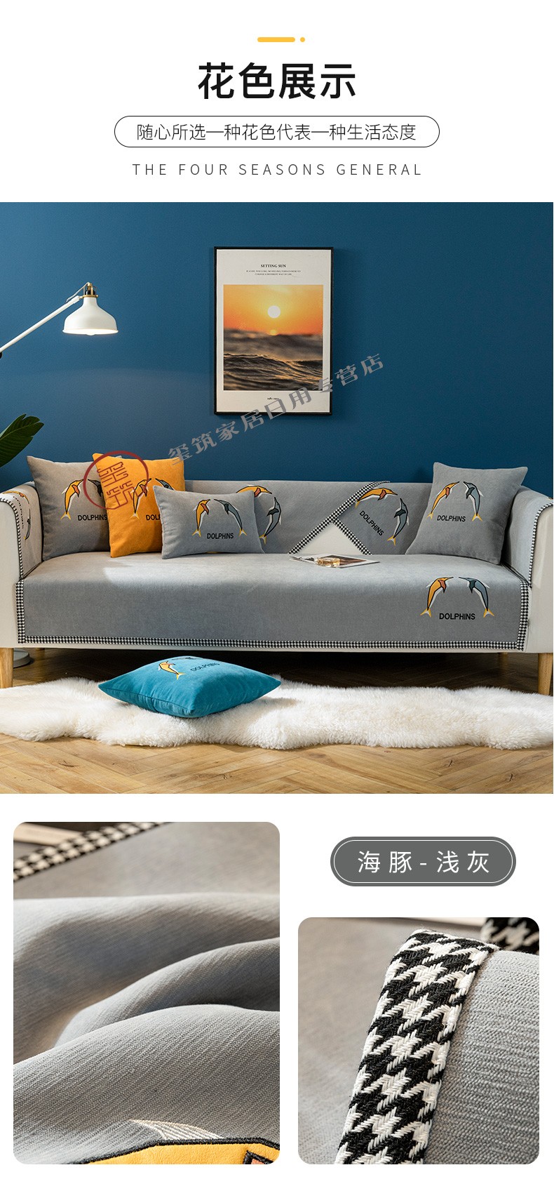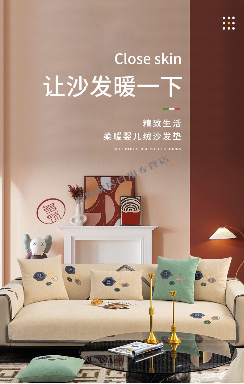 婴儿フランネル沙发垫四季通用防滑轻奢坐垫子北欧简约风格套罩巾 YAS-尚澜-深灰 抱枕套45*45