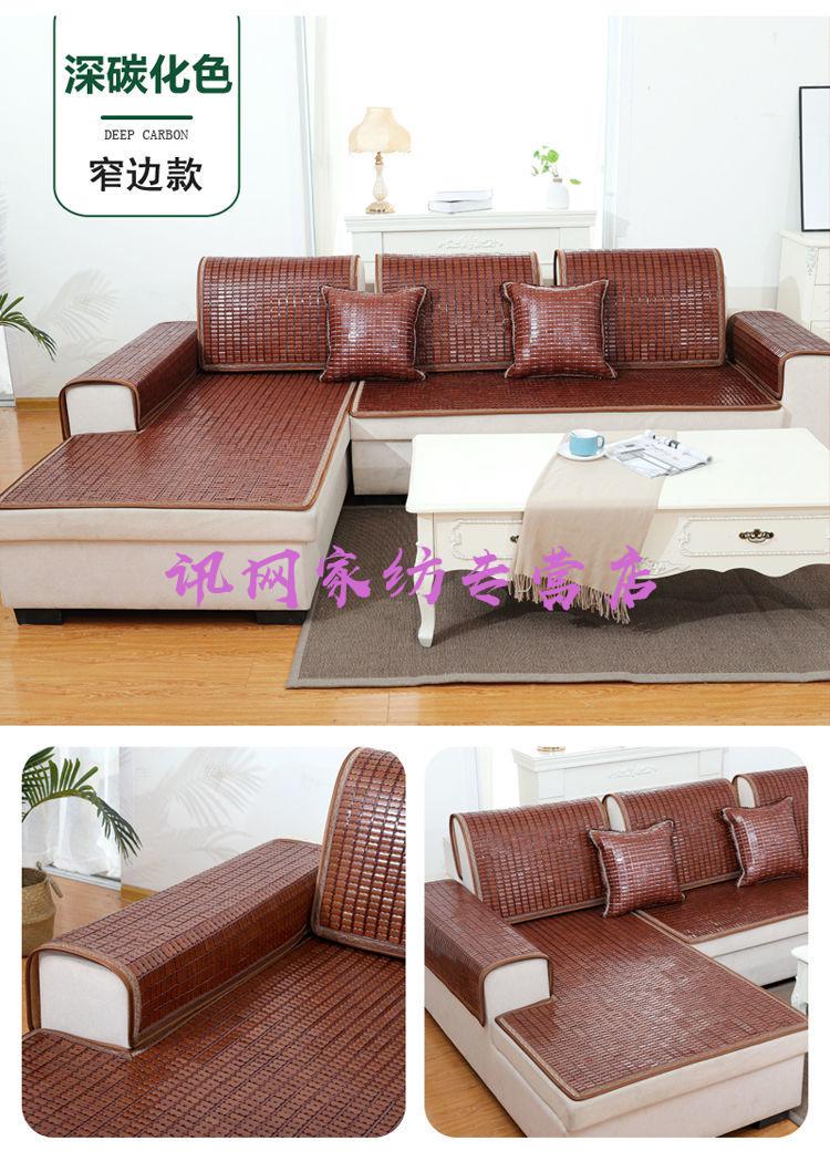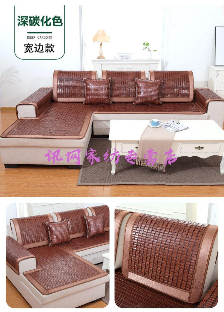 夏季リネン将凉席沙发垫客厅凉垫夏天竹垫子防滑沙发罩套贵妃定做 【碳化】浅咖色双筋窄边【蕾丝款】 80X160(厘米)【图片 价格 品牌 报价】-