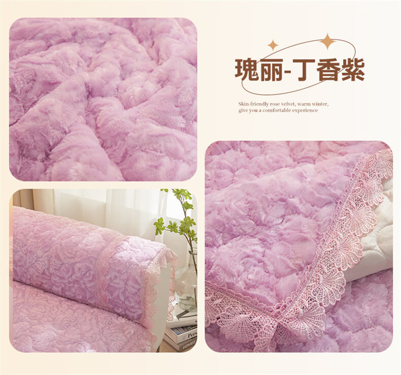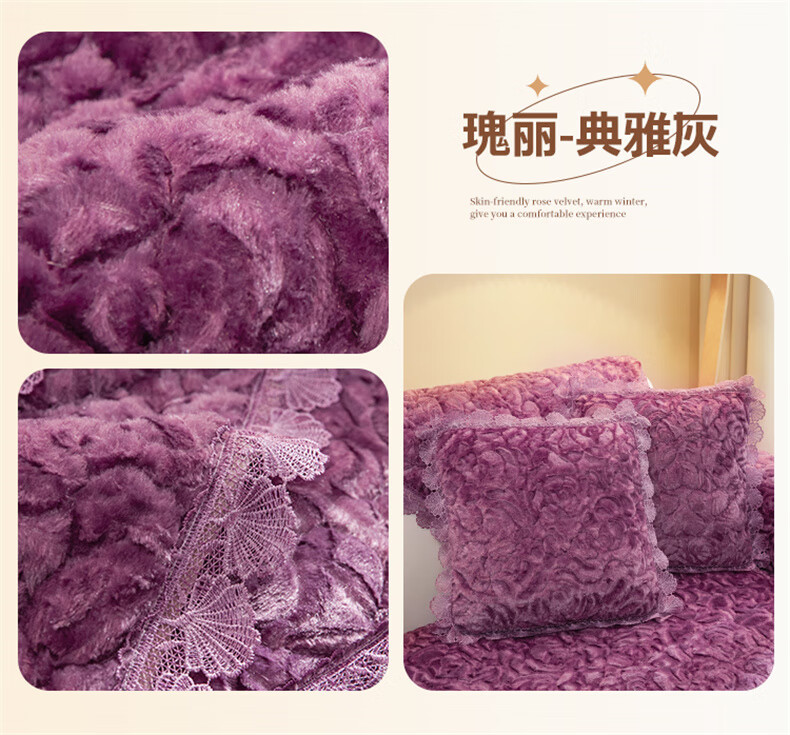 虹原风尚 玫瑰フランネル沙发垫冬季ソファーカバー罩全包毛フランネル盖布巾客厅组合皮木沙发冬款保暖坐垫子靠背巾贵妃位可定制 玫瑰フランネル-紫罗兰 宽70*长70cm(可做扶手或靠背巾)一张