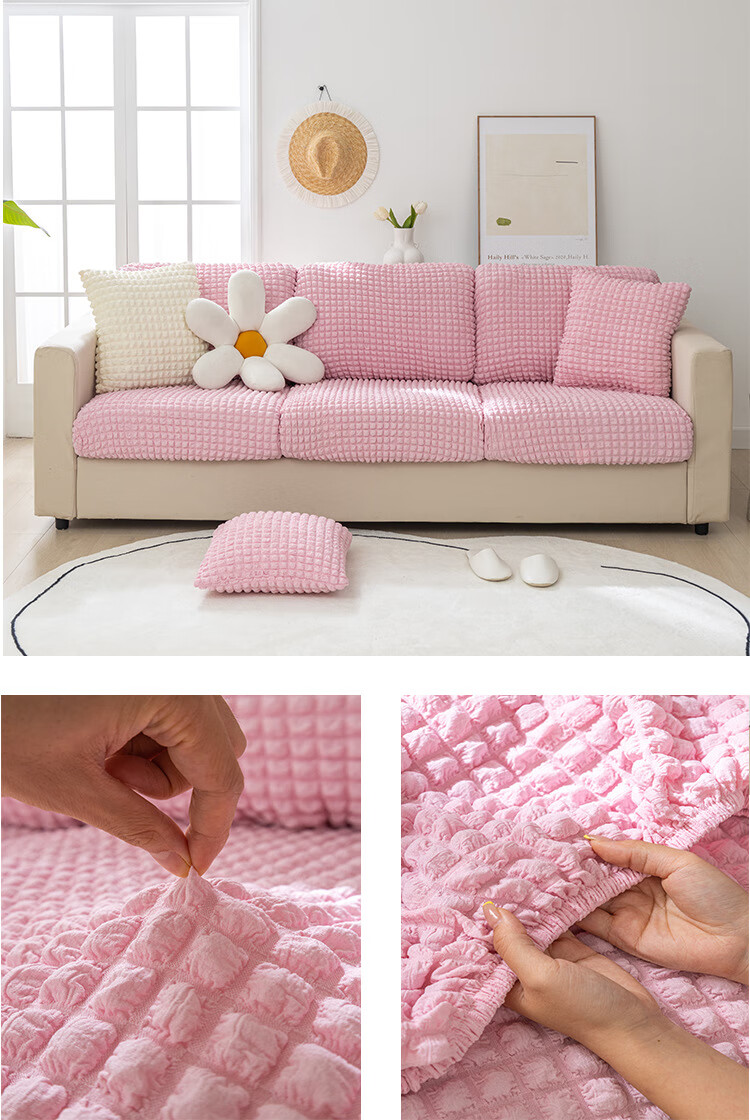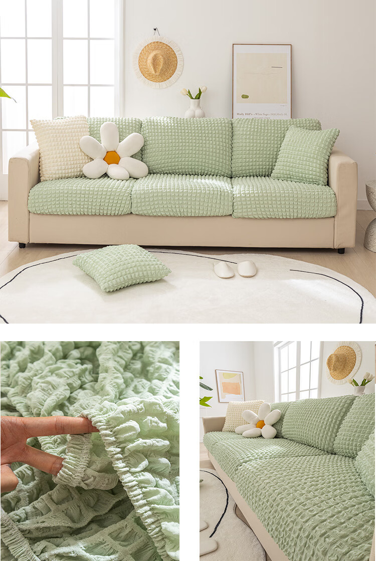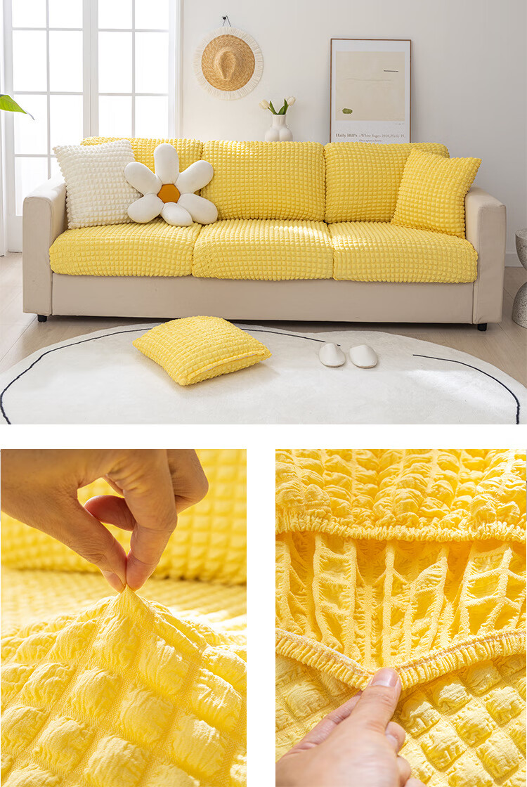 温馨雅 泡泡纱ソファーカバー罩弹力全包套防猫抓防滑沙发罩沙发笠套沙发盖布 泡泡纱-灰色 常规贵妃