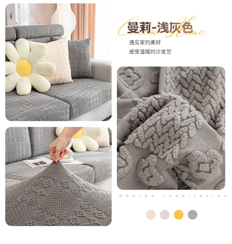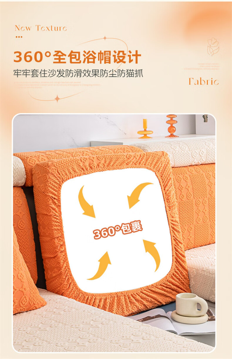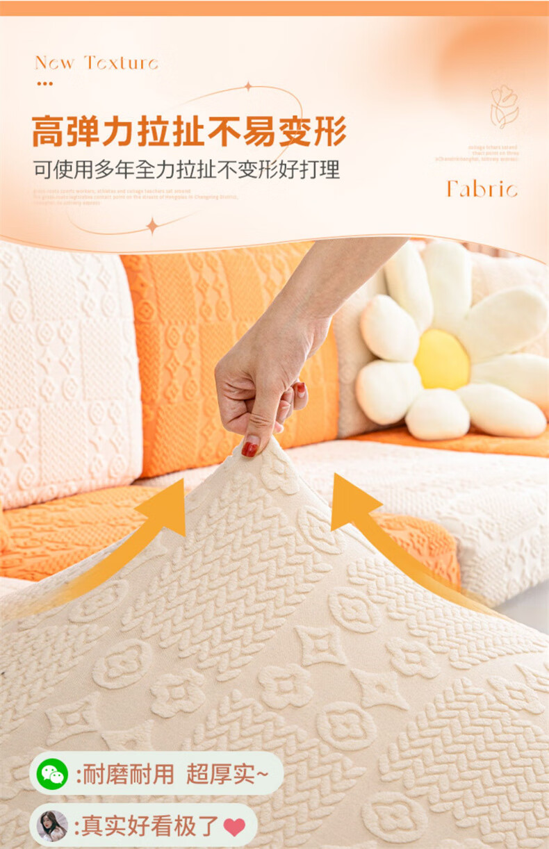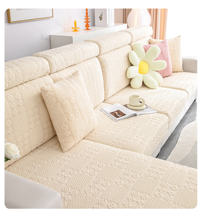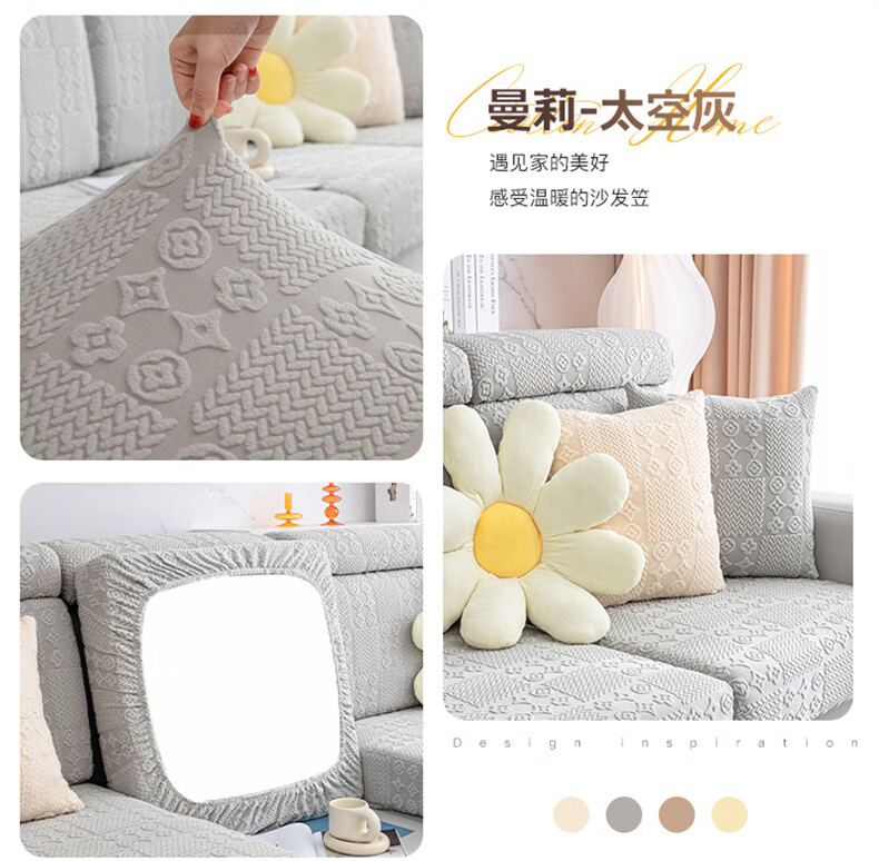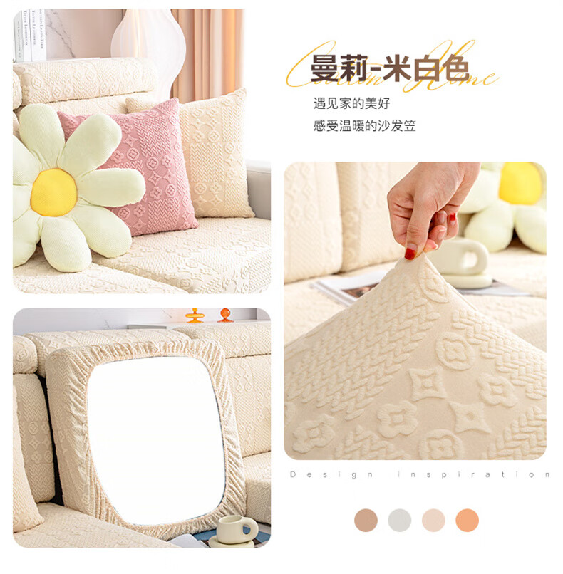 虹原风尚 弹力ソファーカバー罩全包多功能通用型防猫抓加フランネル懒人沙发巾一体式防滑四季靠背巾贵妃位浴帽式全包沙发垫 蔓莉-米白色 45*45cm抱枕套(不含芯)一张