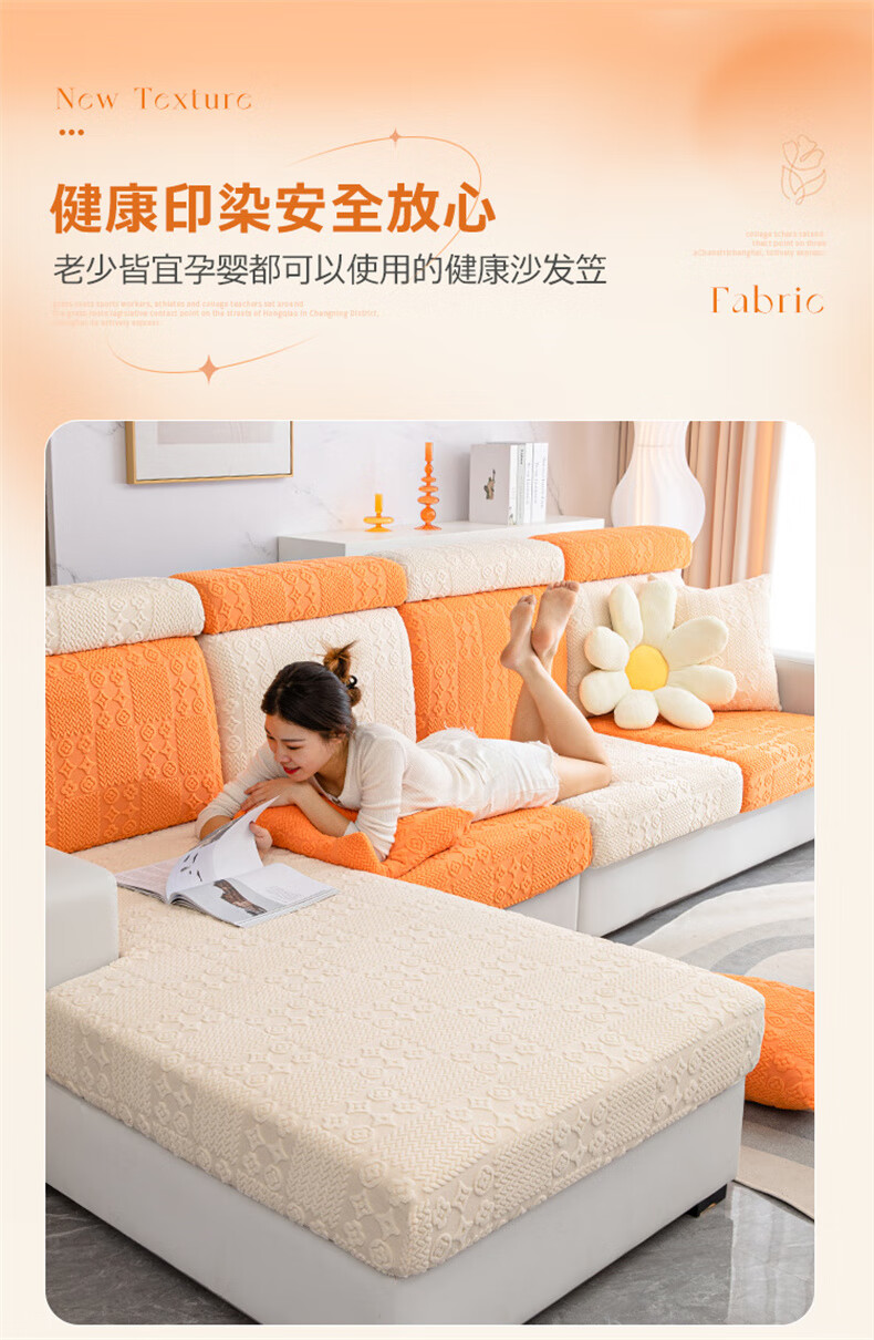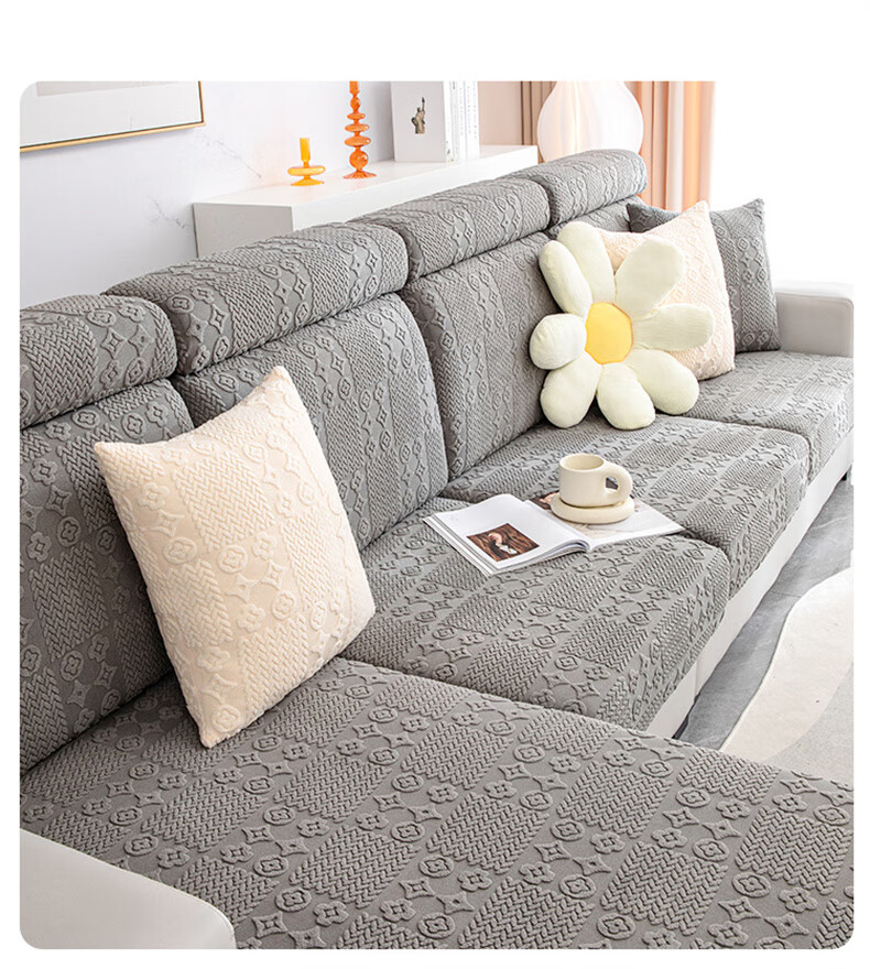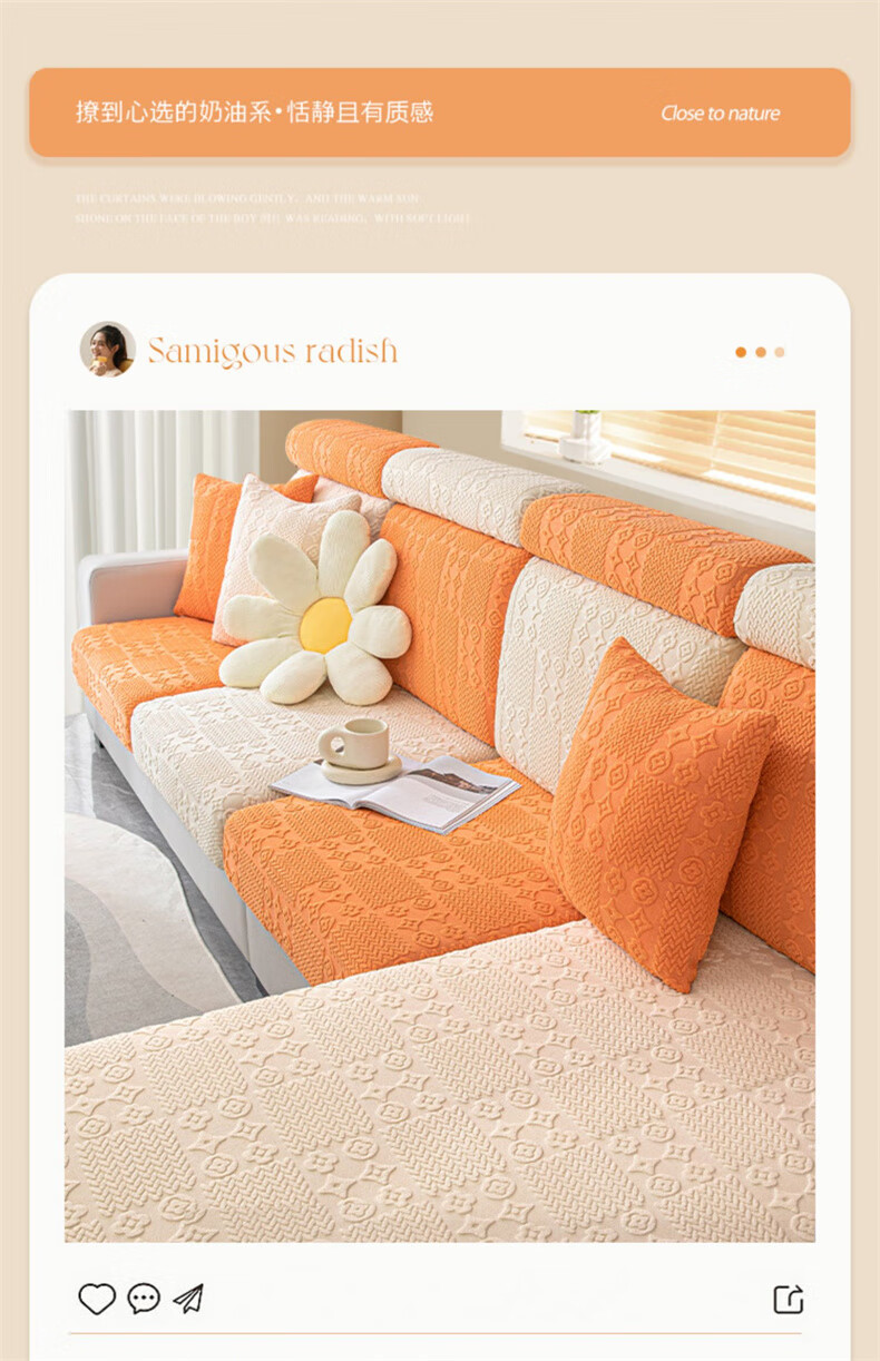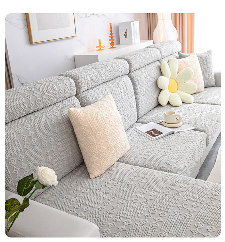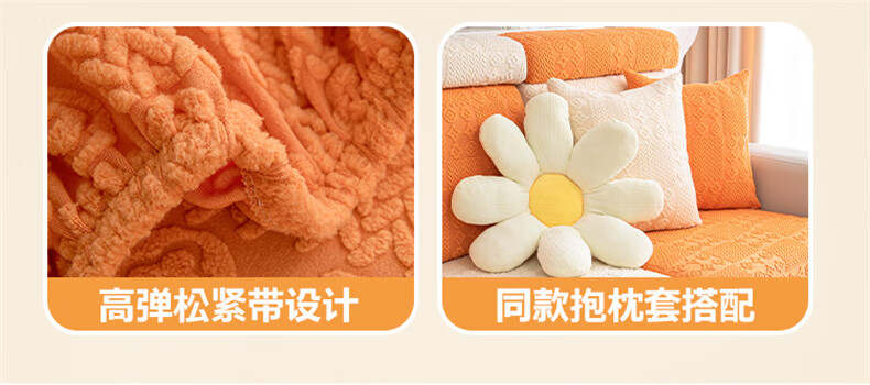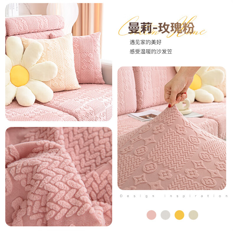 虹原风尚 弹力ソファーカバー罩全包多功能通用型防猫抓加フランネル懒人沙发巾一体式防滑四季靠背巾贵妃位浴帽式全包沙发垫 蔓莉-米白色 45*45cm抱枕套(不含芯)一张