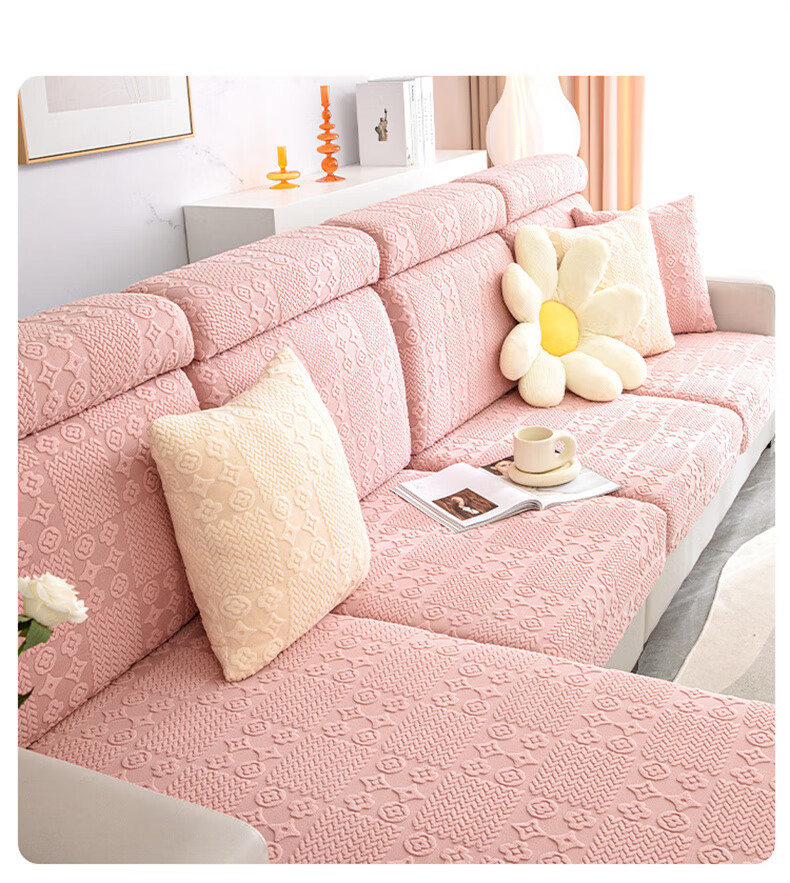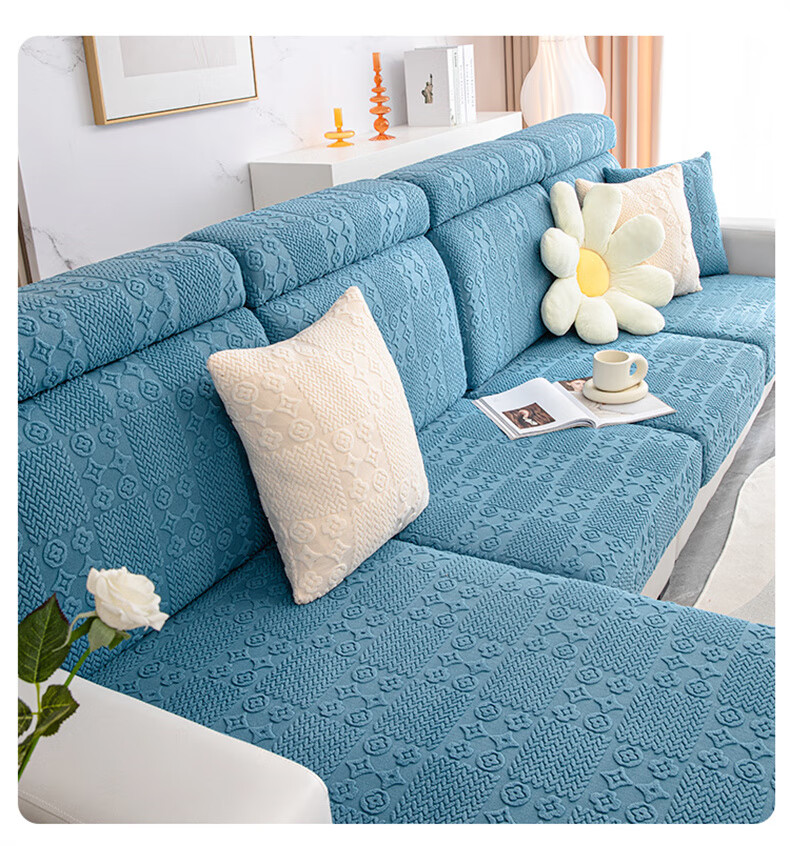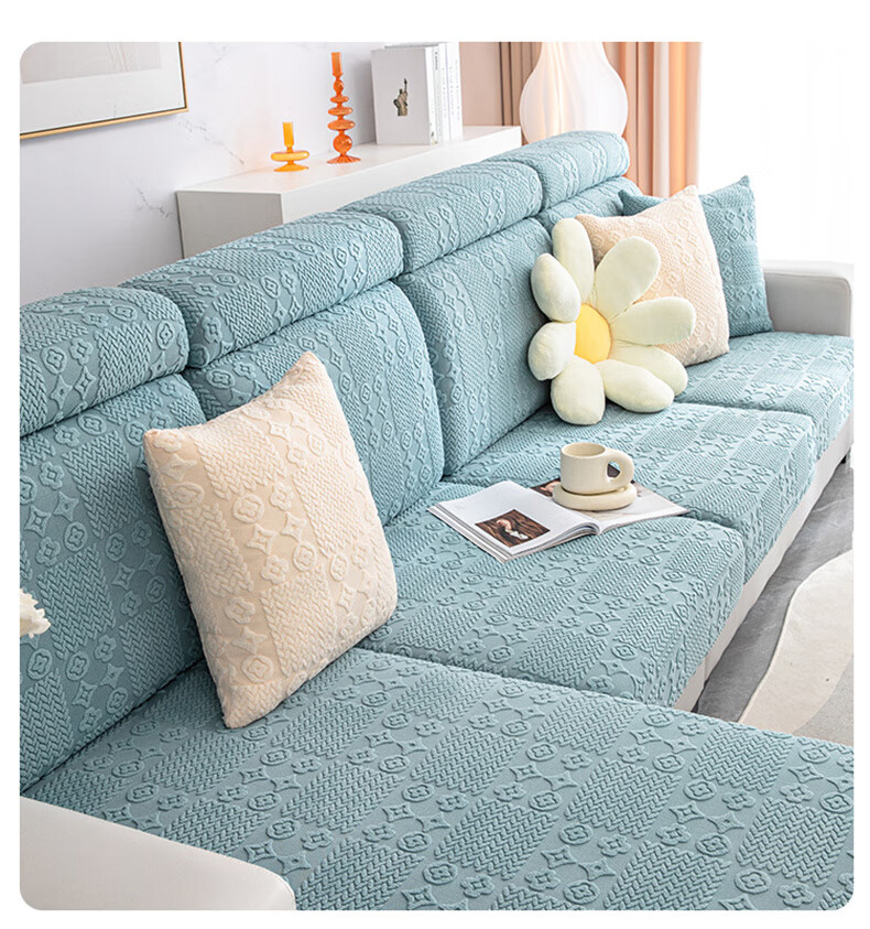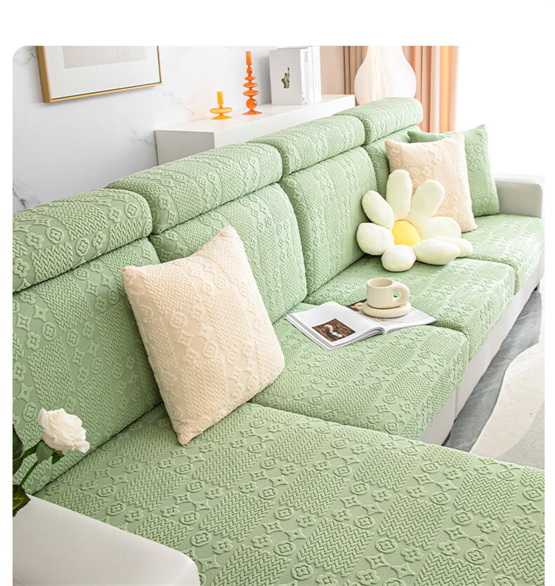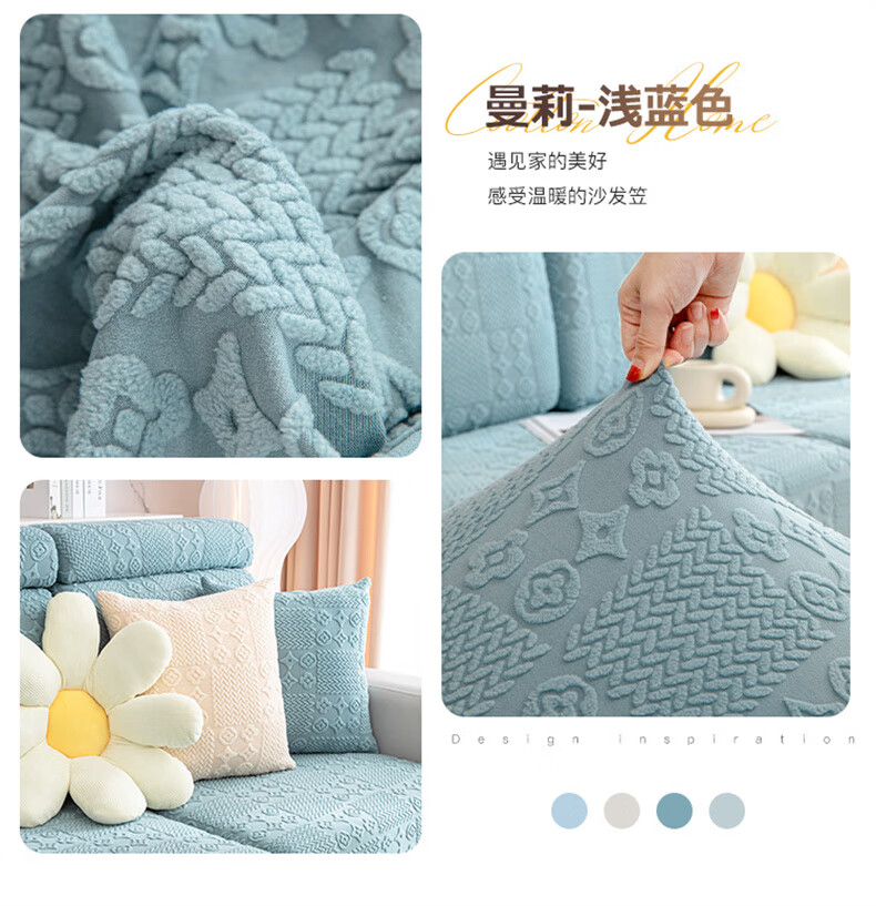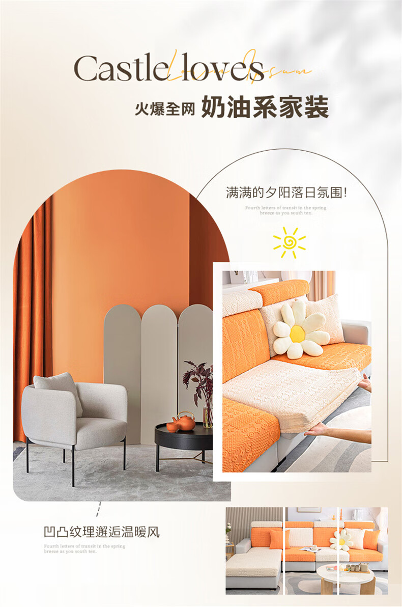 虹原风尚 弹力ソファーカバー罩全包多功能通用型防猫抓加フランネル懒人沙发巾一体式防滑四季靠背巾贵妃位浴帽式全包沙发垫 蔓莉-米白色 45*45cm抱枕套(不含芯)一张